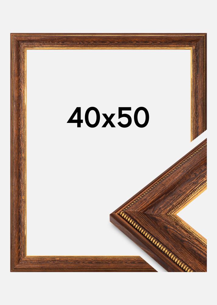 Ta elegantna okvir za slike v velikosti 40x50 cm je popolna kombinacija rustikalnega šarma in klasične elegance. Izdelan iz visokokakovostnega lesa, ima okvir globoko in bogato rjavo barvo, ki poudarja naravno strukturo lesa. Dekorativni zlatni detajli vzdolž notranjega roba dodajo prefinjen pridih, ki dopolnjuje tako tradicionalne kot tudi vintidž navdihnjene notranje dizajne.
