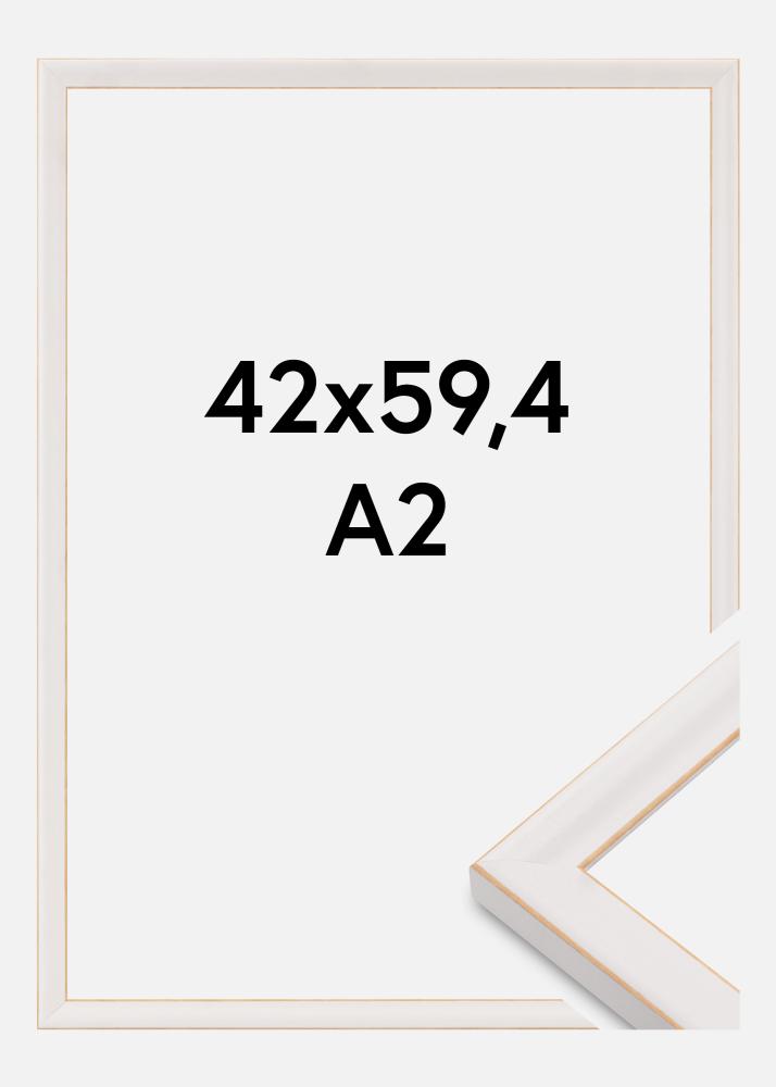 Ta elegantna okvir za slike v mehkem kremno belem odtenku s tankim zlatim robom je popolna kombinacija klasičnega in sodobnega dizajna. Z velikostjo okvira 42x59,4 cm (A2) je idealen za poudarjanje umetniških del, fotografij ali spominov na brezčasen način. Subtilna zlata podrobnost vzdolž notranjega roba daje ekskluziven občutek, ki vaše slike uokviri na prefinjen način.