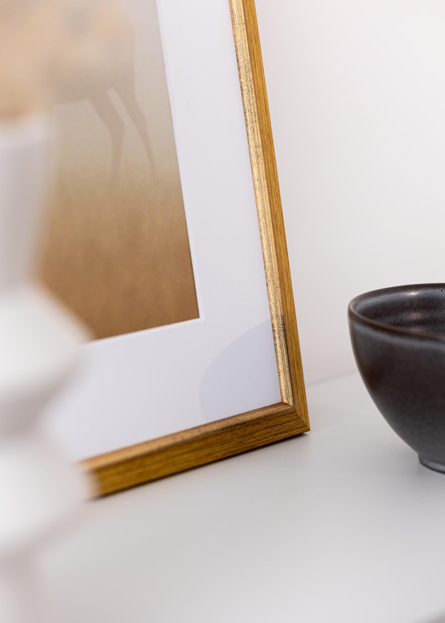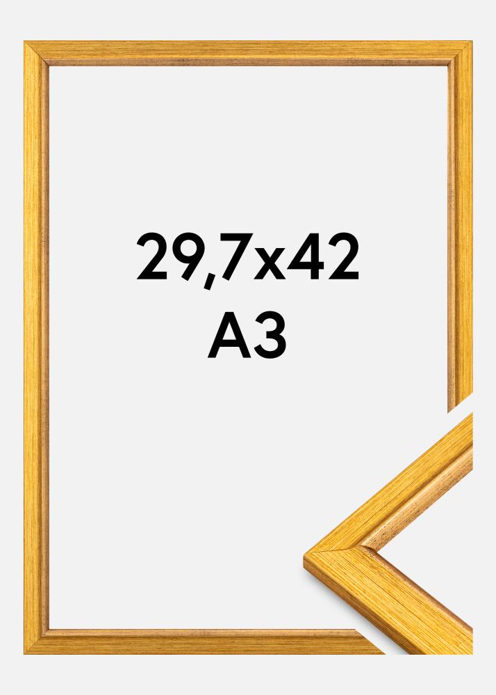 Ta zlato obarvan fotookvir je kot nalašč za motive v velikosti 29,7 x 42 cm in je odlična izbira za tiste, ki želijo svojim slikam dati eleganten okvir. Ne glede na to, ali želite razstaviti umetniška dela, fotografije ali plakate, bo ta okvir poudaril vaše motive na stilski način.