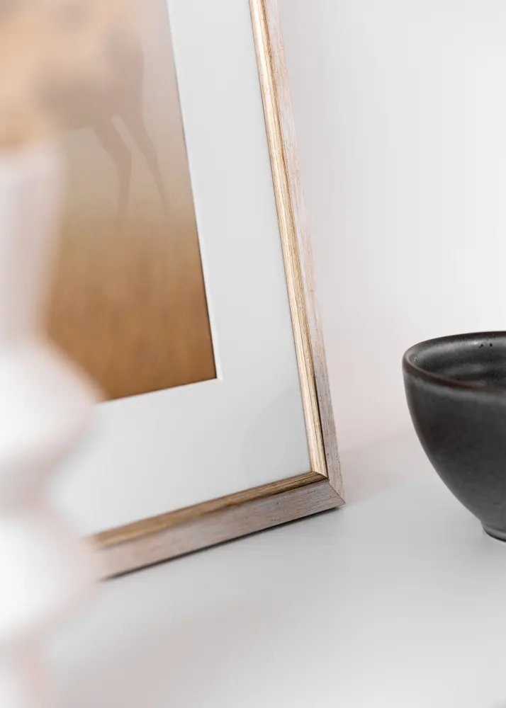 Okvir je izdelan iz lesa in ima 19 mm širok rob ter globino 15 mm, kar zagotavlja robustno in stabilno okvirjanje. Na zadnji strani je opremljen s kovinskimi obešali, kar olajša obešanje okvirja tako horizontalno kot vertikalno, odvisno od tega, kaj najbolj ustreza vašemu motivu.