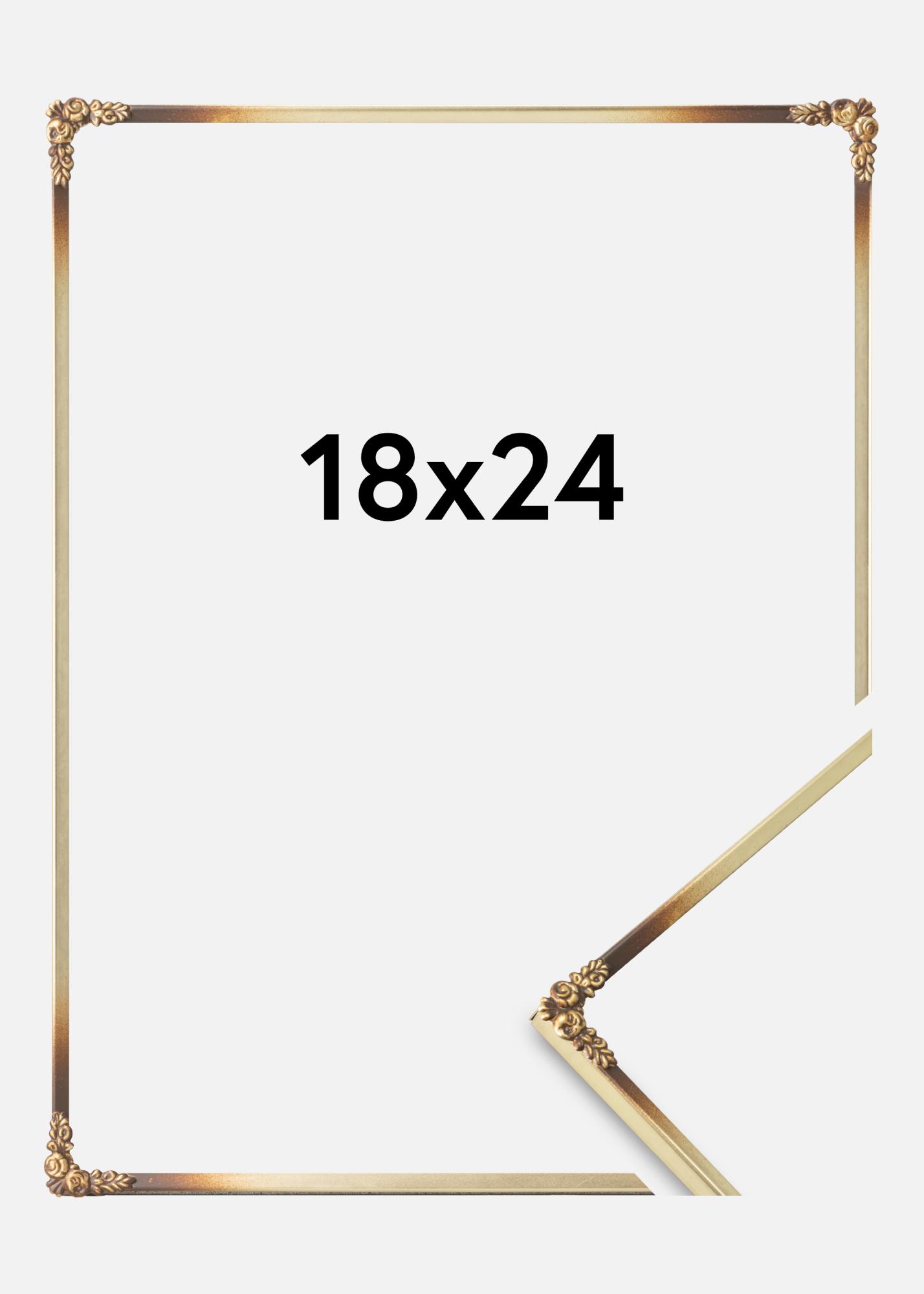 Rosen Kovina Zlato je klasičen okvir, ki daje prefinjen okvir vsem vašim motivom. Vsak vogal je okrašen z majhnimi vrtnicami, ki so rahlo "zažgane" za pravo obdelavo. Okvir je narejen iz kovine zlatega barvila, kar ga naredi robustnega hkrati pa poudarja ekskluziven občutek, ki ga okvir daje.