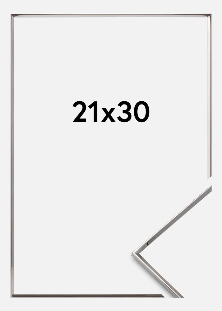 Gladke Kovine Srebrn je okvir v klasičnem slogu, ki elegantno obdaja vse vaše najljubše motive. Okvir je izdelan iz kovine in ima svetleč srebrn zaključek, kar daje okvirju zelo eleganten videz, ki se dobro prilega tako v tradicionalnih kot modernih domovih. Profil je tanek, tako da je ves poudarek na vaših motivih. Namestitev vaših slik se izvede s pomočjo majhnih upogljivih žebljičkov na hrbtni strani okvirja.
