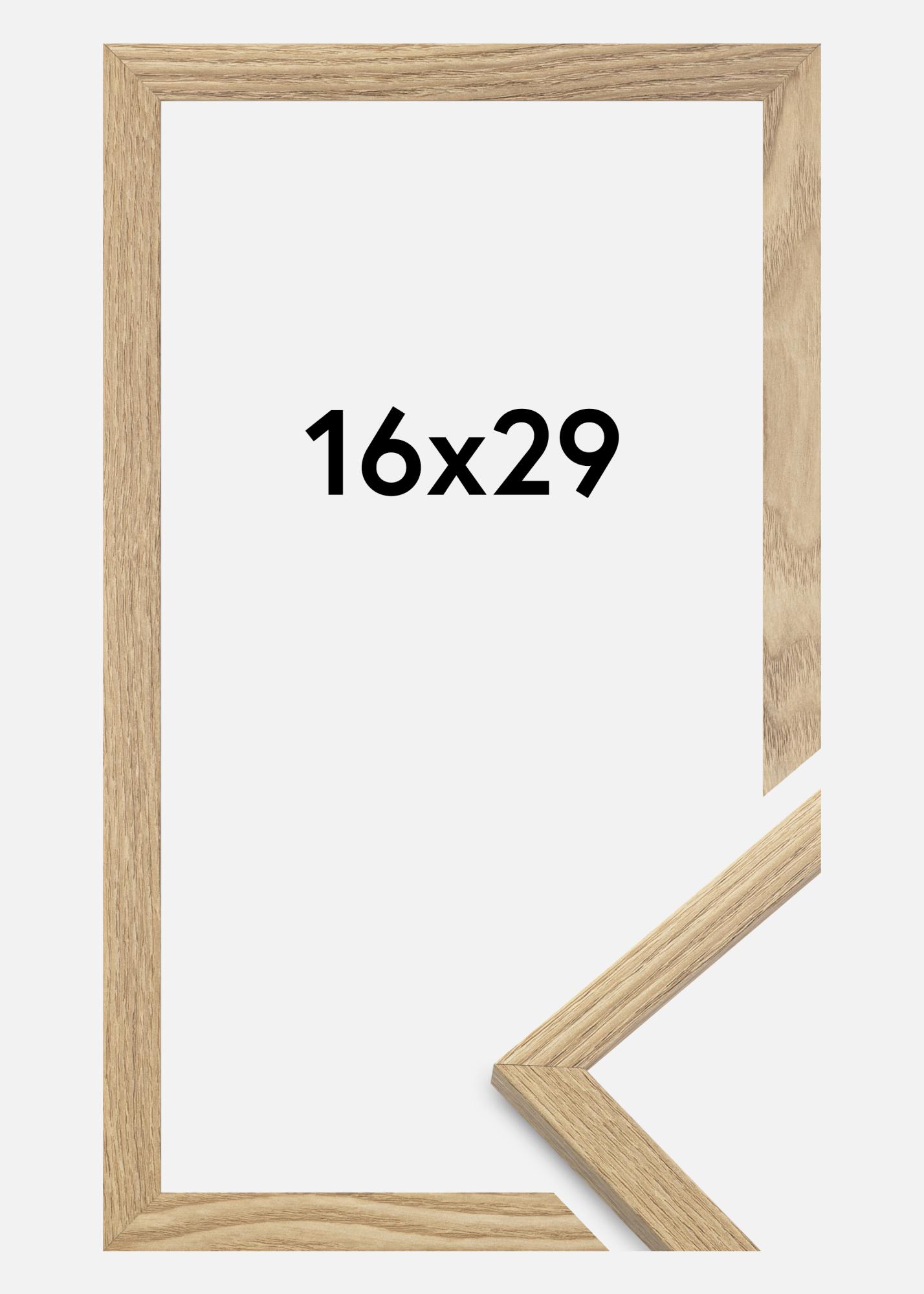 Okvir je izdelan iz MDF-materiala s folirano površino v barvi hrasta in ima tanek okvir s profilom 14 mm. Na voljo je dovolj prostora za dopolnitev vaših slik z razkošnim passepartoujem, zahvaljujoč notranji globini (dnu) okvirja 12 mm.