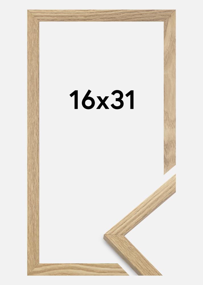 Okvir je izdelan iz MDF-materiala s folirano površino v barvi hrasta in ima tanek okvir s profilom 14 mm. Na voljo je dovolj prostora za dopolnitev vaših slik z razkošnim passepartoujem, zahvaljujoč notranji globini (dnu) okvirja 12 mm.