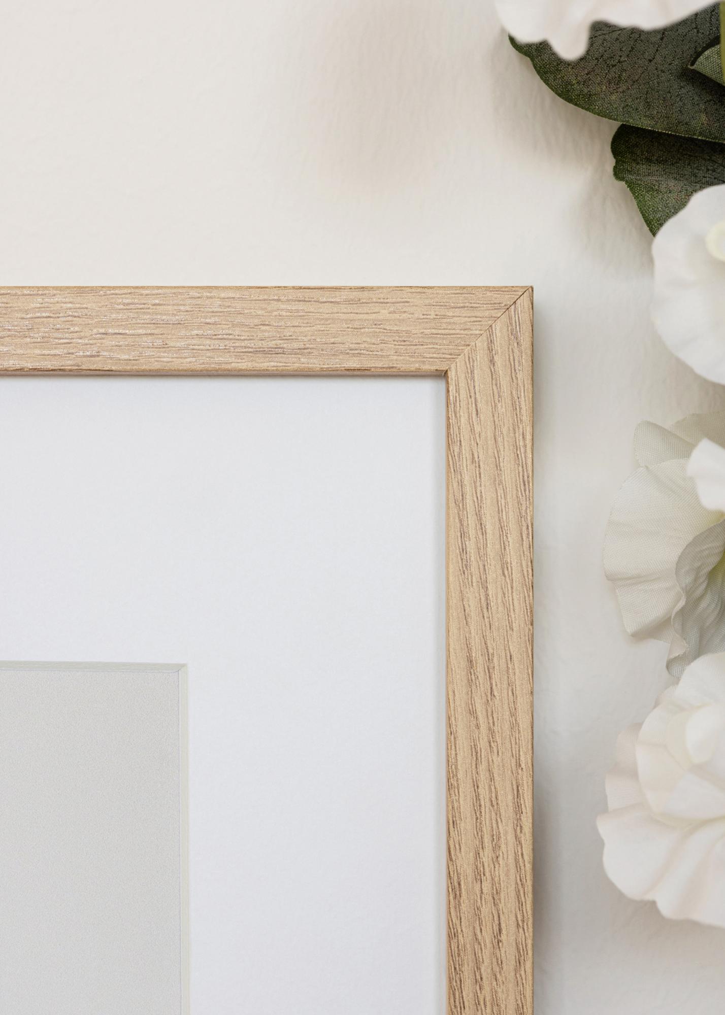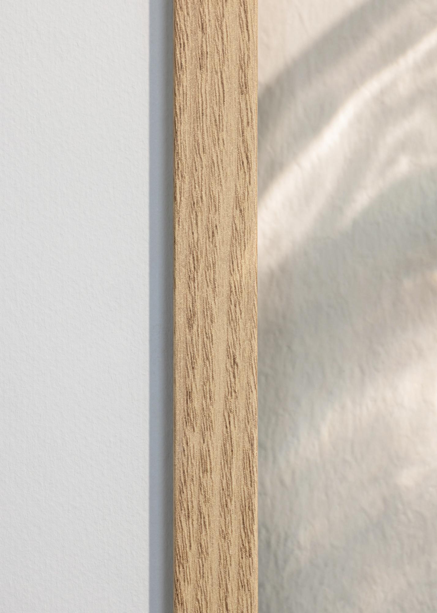 Okvir je izdelan iz MDF-materiala s folirano površino v barvi hrasta in ima tanek okvir s profilom 14 mm. Na voljo je dovolj prostora za dopolnitev vaših slik z razkošnim passepartoujem, zahvaljujoč notranji globini (dnu) okvirja 12 mm.
