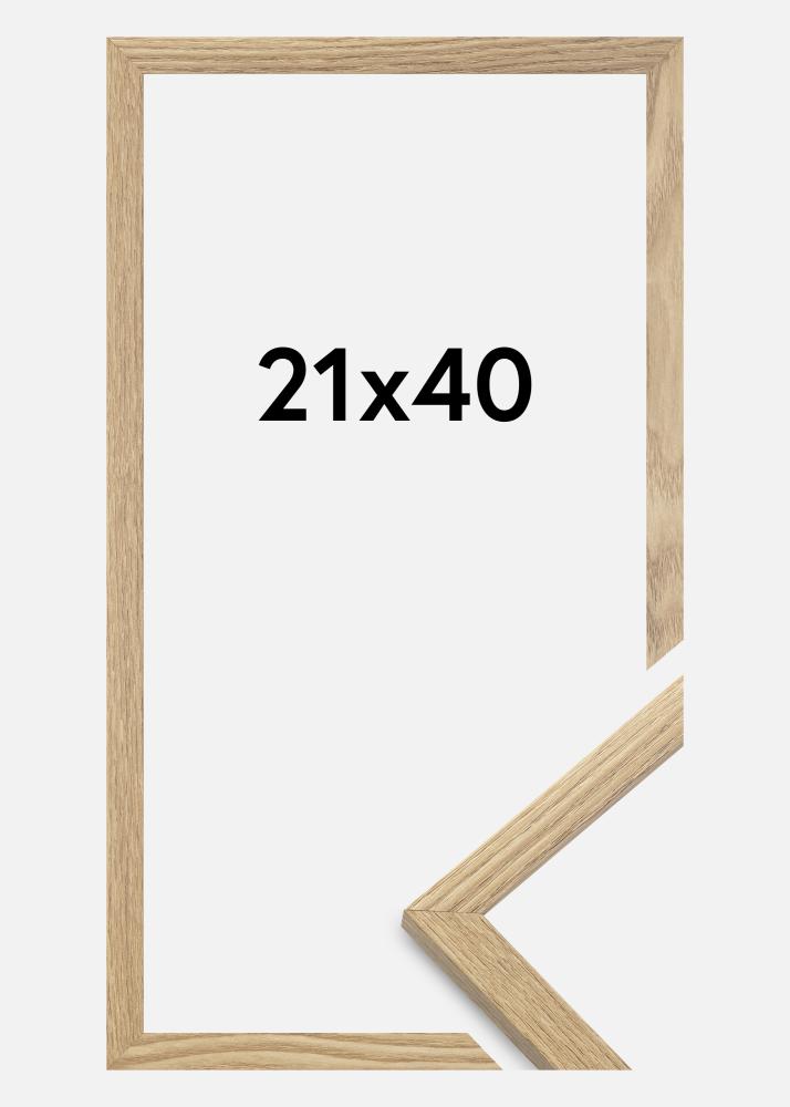 Okvir je izdelan iz MDF-materiala s folirano površino v barvi hrasta in ima tanek okvir s profilom 14 mm. Na voljo je dovolj prostora za dopolnitev vaših slik z razkošnim passepartoujem, zahvaljujoč notranji globini (dnu) okvirja 12 mm.