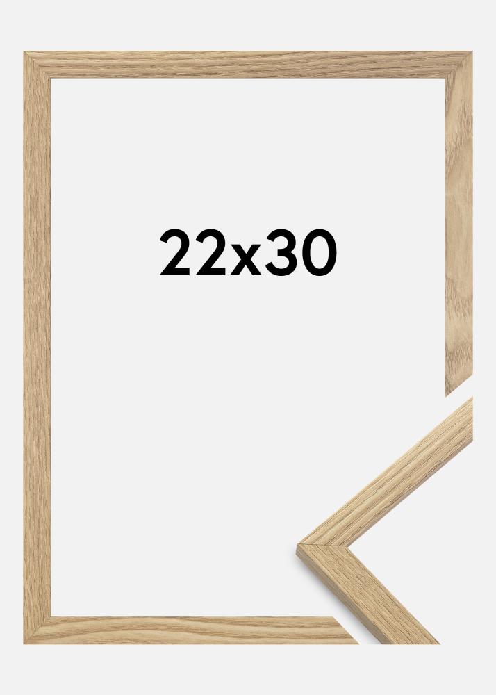 Okvir je izdelan iz MDF-materiala s folirano površino v barvi hrasta in ima tanek okvir s profilom 14 mm. Na voljo je dovolj prostora za dopolnitev vaših slik z razkošnim passepartoujem, zahvaljujoč notranji globini (dnu) okvirja 12 mm.