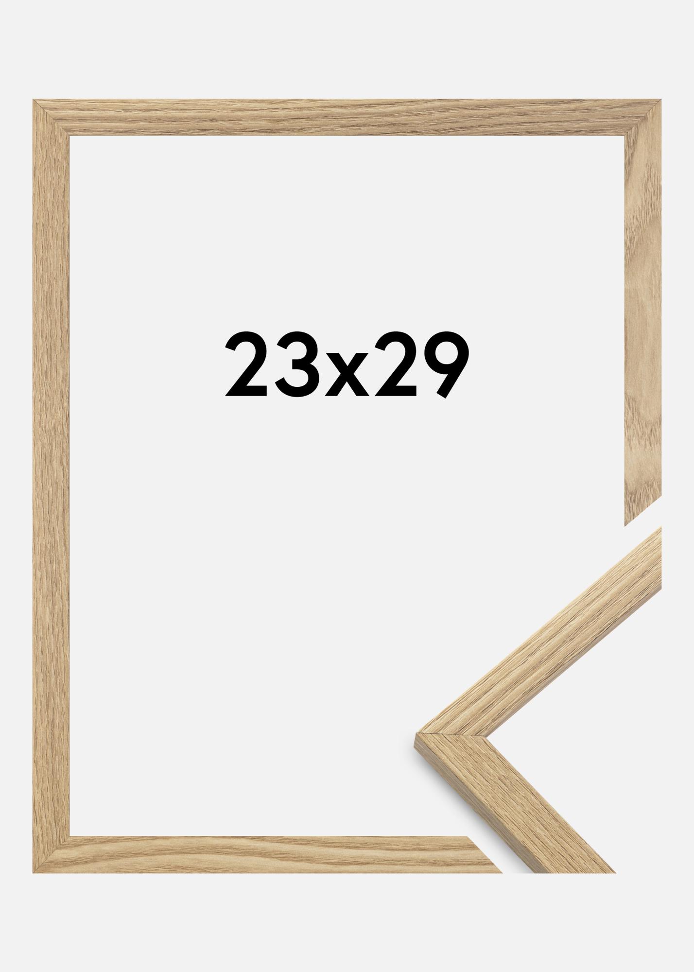 Okvir je izdelan iz MDF-materiala s folirano površino v barvi hrasta in ima tanek okvir s profilom 14 mm. Na voljo je dovolj prostora za dopolnitev vaših slik z razkošnim passepartoujem, zahvaljujoč notranji globini (dnu) okvirja 12 mm.