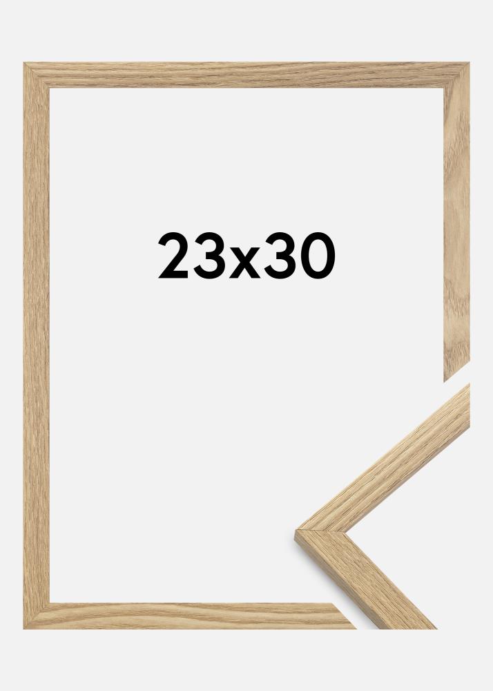 Okvir je izdelan iz MDF-materiala s folirano površino v barvi hrasta in ima tanek okvir s profilom 14 mm. Na voljo je dovolj prostora za dopolnitev vaših slik z razkošnim passepartoujem, zahvaljujoč notranji globini (dnu) okvirja 12 mm.