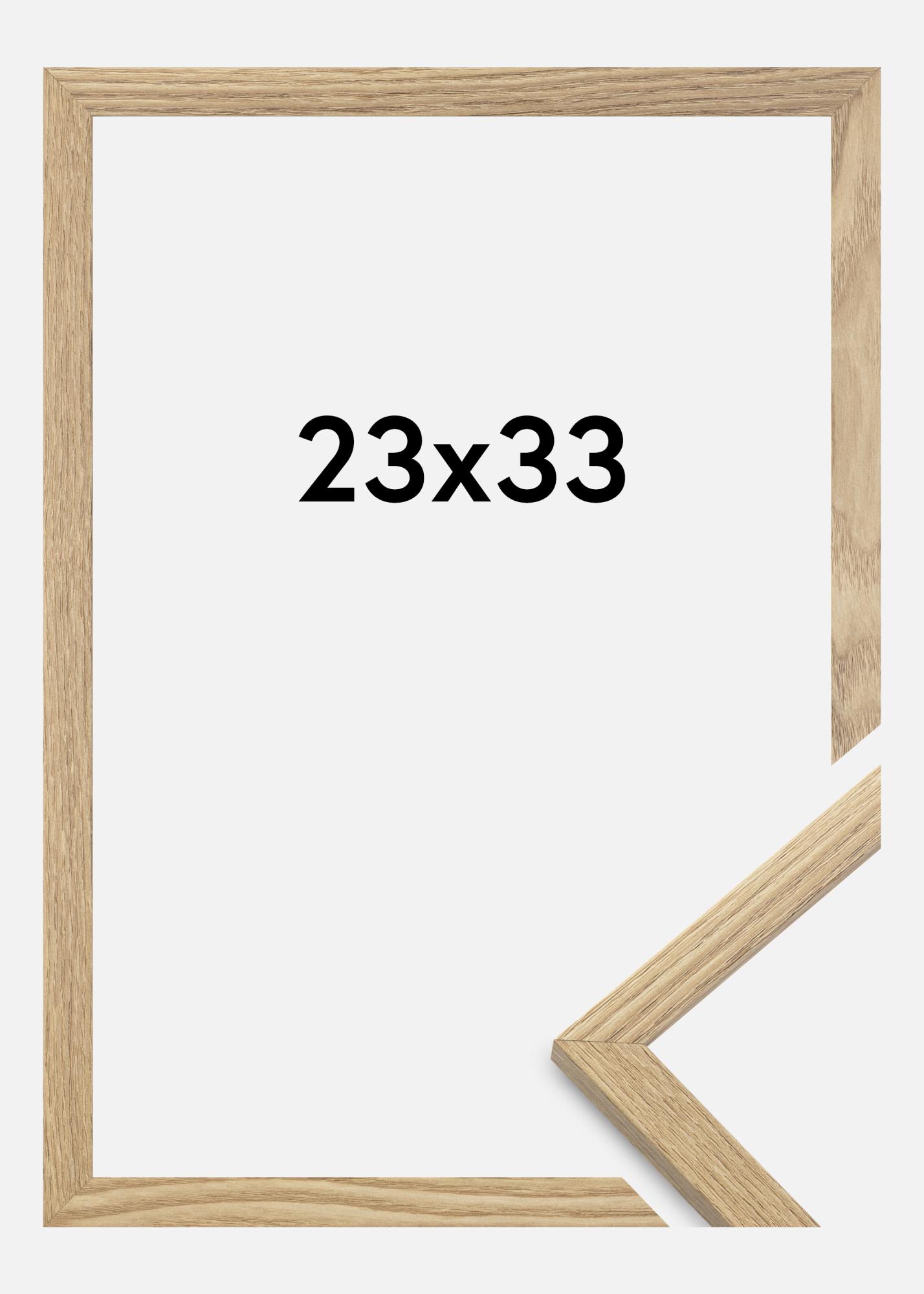 Okvir je izdelan iz MDF-materiala s folirano površino v barvi hrasta in ima tanek okvir s profilom 14 mm. Na voljo je dovolj prostora za dopolnitev vaših slik z razkošnim passepartoujem, zahvaljujoč notranji globini (dnu) okvirja 12 mm.