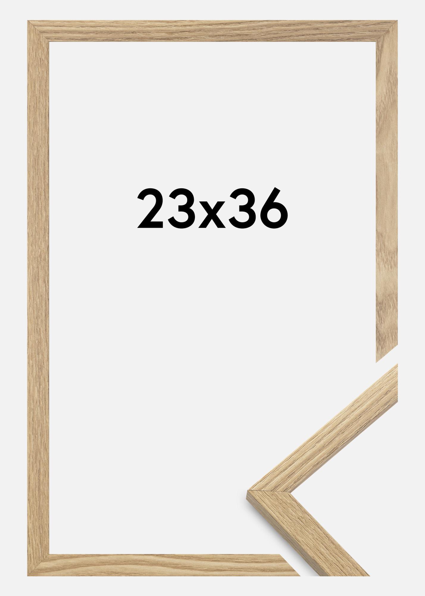 Okvir je izdelan iz MDF-materiala s folirano površino v barvi hrasta in ima tanek okvir s profilom 14 mm. Na voljo je dovolj prostora za dopolnitev vaših slik z razkošnim passepartoujem, zahvaljujoč notranji globini (dnu) okvirja 12 mm.