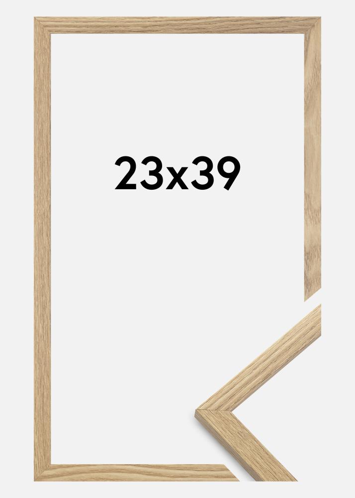 Okvir je izdelan iz MDF-materiala s folirano površino v barvi hrasta in ima tanek okvir s profilom 14 mm. Na voljo je dovolj prostora za dopolnitev vaših slik z razkošnim passepartoujem, zahvaljujoč notranji globini (dnu) okvirja 12 mm.