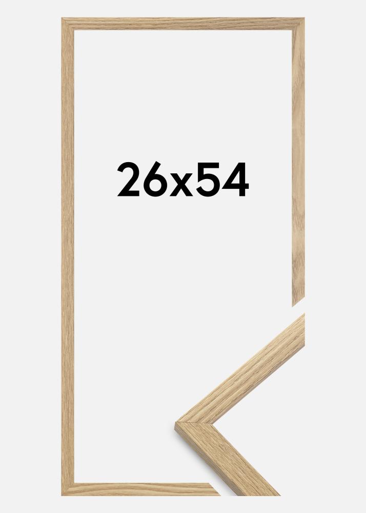 Okvir je izdelan iz MDF-materiala s folirano površino v barvi hrasta in ima tanek okvir s profilom 14 mm. Na voljo je dovolj prostora za dopolnitev vaših slik z razkošnim passepartoujem, zahvaljujoč notranji globini (dnu) okvirja 12 mm.