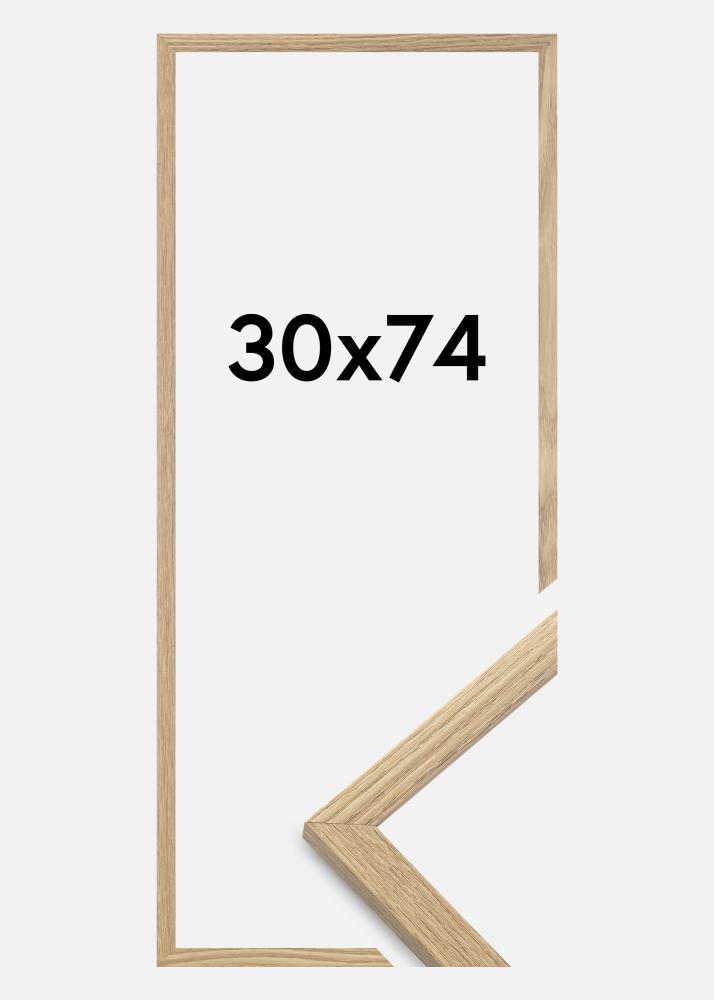 Okvir je izdelan iz MDF-materiala s folirano površino v barvi hrasta in ima tanek okvir s profilom 14 mm. Na voljo je dovolj prostora za dopolnitev vaših slik z razkošnim passepartoujem, zahvaljujoč notranji globini (dnu) okvirja 12 mm.