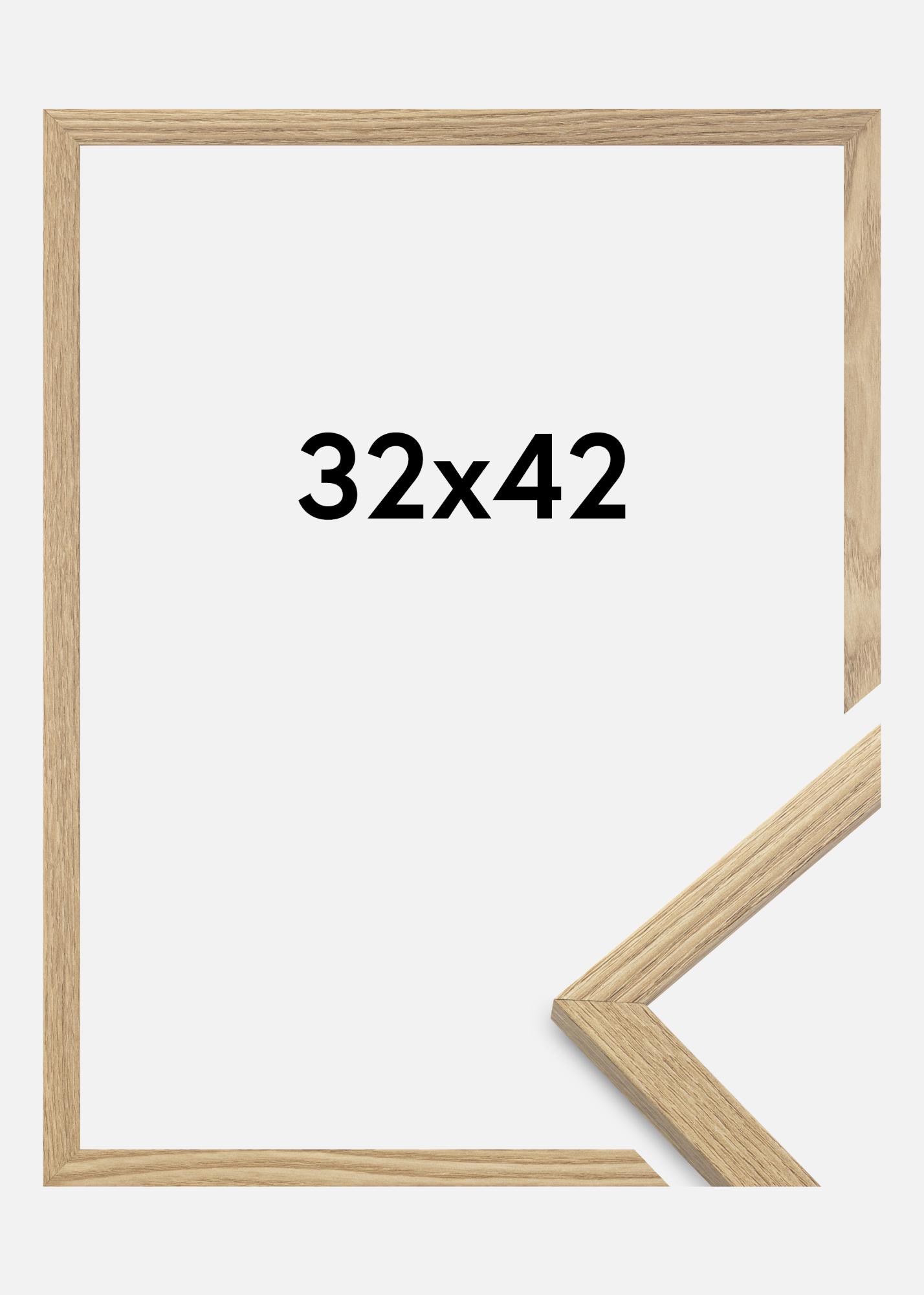 Okvir je izdelan iz MDF-materiala s folirano površino v barvi hrasta in ima tanek okvir s profilom 14 mm. Na voljo je dovolj prostora za dopolnitev vaših slik z razkošnim passepartoujem, zahvaljujoč notranji globini (dnu) okvirja 12 mm.