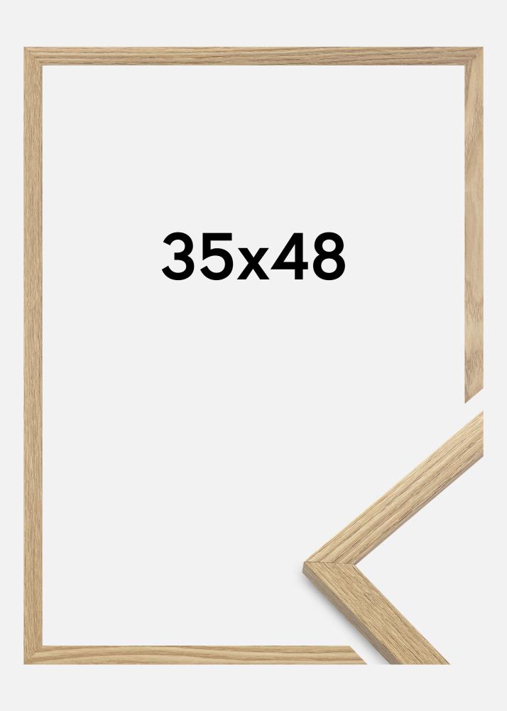 Okvir je izdelan iz MDF-materiala s folirano površino v barvi hrasta in ima tanek okvir s profilom 14 mm. Na voljo je dovolj prostora za dopolnitev vaših slik z razkošnim passepartoujem, zahvaljujoč notranji globini (dnu) okvirja 12 mm.