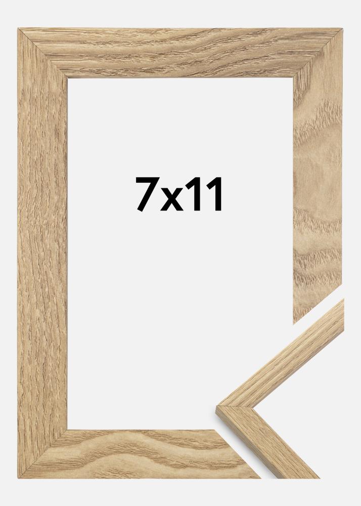 Okvir je izdelan iz MDF-materiala s folirano površino v barvi hrasta in ima tanek okvir s profilom 14 mm. Na voljo je dovolj prostora za dopolnitev vaših slik z razkošnim passepartoujem, zahvaljujoč notranji globini (dnu) okvirja 12 mm.