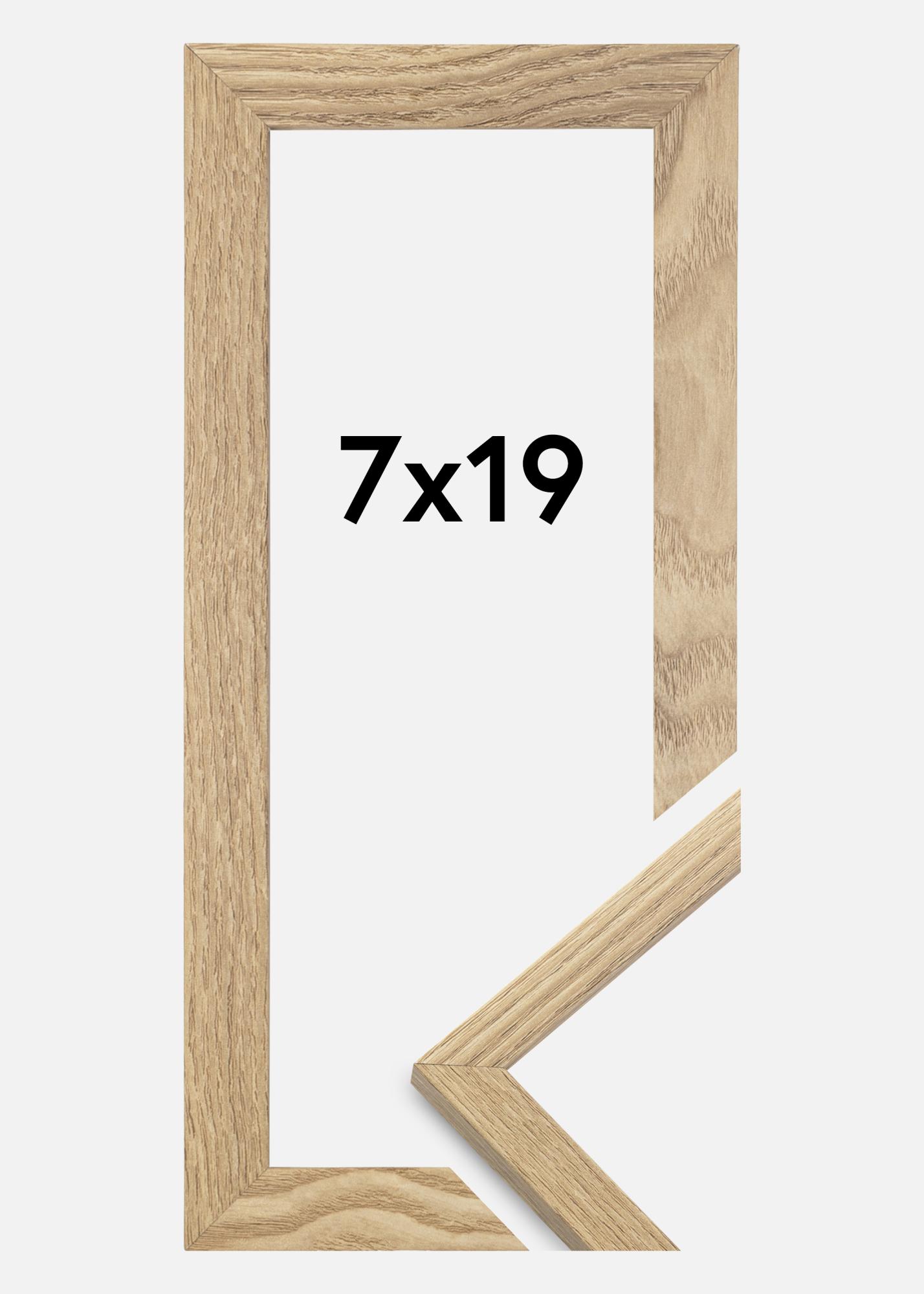 Okvir je izdelan iz MDF-materiala s folirano površino v barvi hrasta in ima tanek okvir s profilom 14 mm. Na voljo je dovolj prostora za dopolnitev vaših slik z razkošnim passepartoujem, zahvaljujoč notranji globini (dnu) okvirja 12 mm.