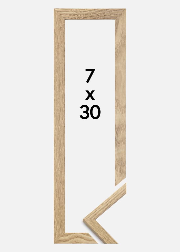 Okvir je izdelan iz MDF-materiala s folirano površino v barvi hrasta in ima tanek okvir s profilom 14 mm. Na voljo je dovolj prostora za dopolnitev vaših slik z razkošnim passepartoujem, zahvaljujoč notranji globini (dnu) okvirja 12 mm.