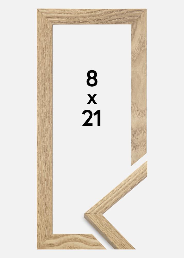 Okvir je izdelan iz MDF-materiala s folirano površino v barvi hrasta in ima tanek okvir s profilom 14 mm. Na voljo je dovolj prostora za dopolnitev vaših slik z razkošnim passepartoujem, zahvaljujoč notranji globini (dnu) okvirja 12 mm.