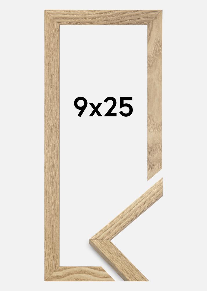 Okvir je izdelan iz MDF-materiala s folirano površino v barvi hrasta in ima tanek okvir s profilom 14 mm. Na voljo je dovolj prostora za dopolnitev vaših slik z razkošnim passepartoujem, zahvaljujoč notranji globini (dnu) okvirja 12 mm.