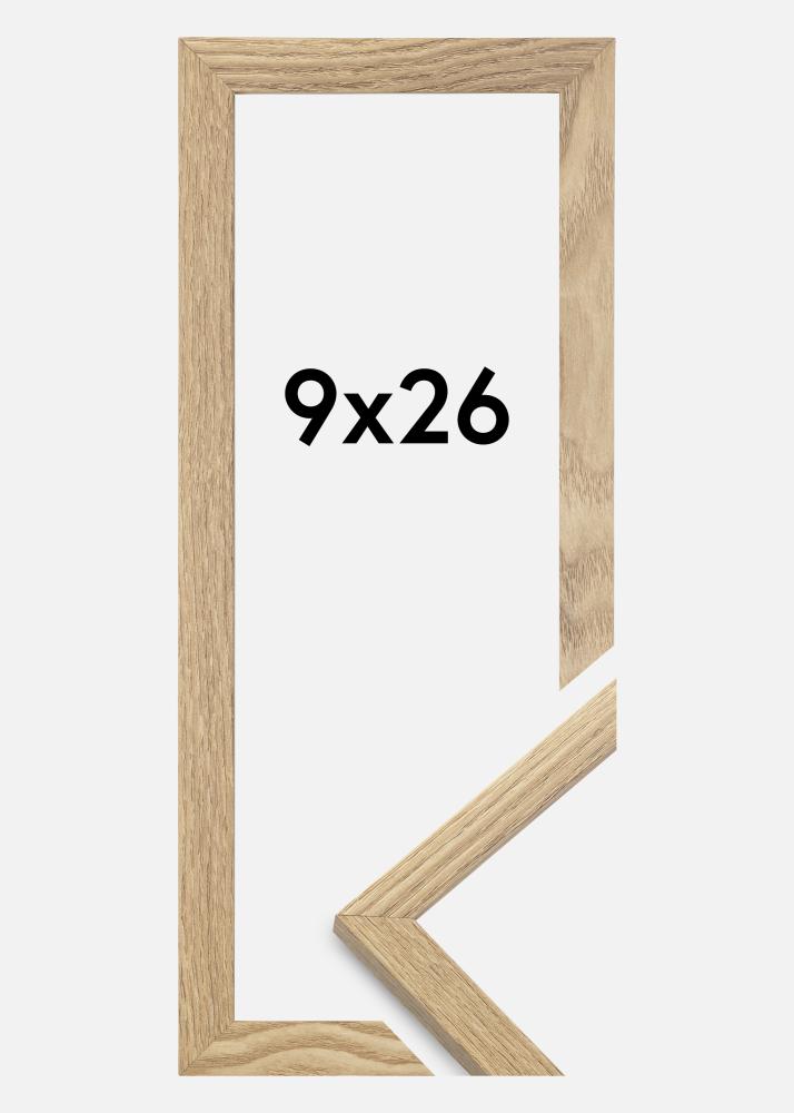 Okvir je izdelan iz MDF-materiala s folirano površino v barvi hrasta in ima tanek okvir s profilom 14 mm. Na voljo je dovolj prostora za dopolnitev vaših slik z razkošnim passepartoujem, zahvaljujoč notranji globini (dnu) okvirja 12 mm.
