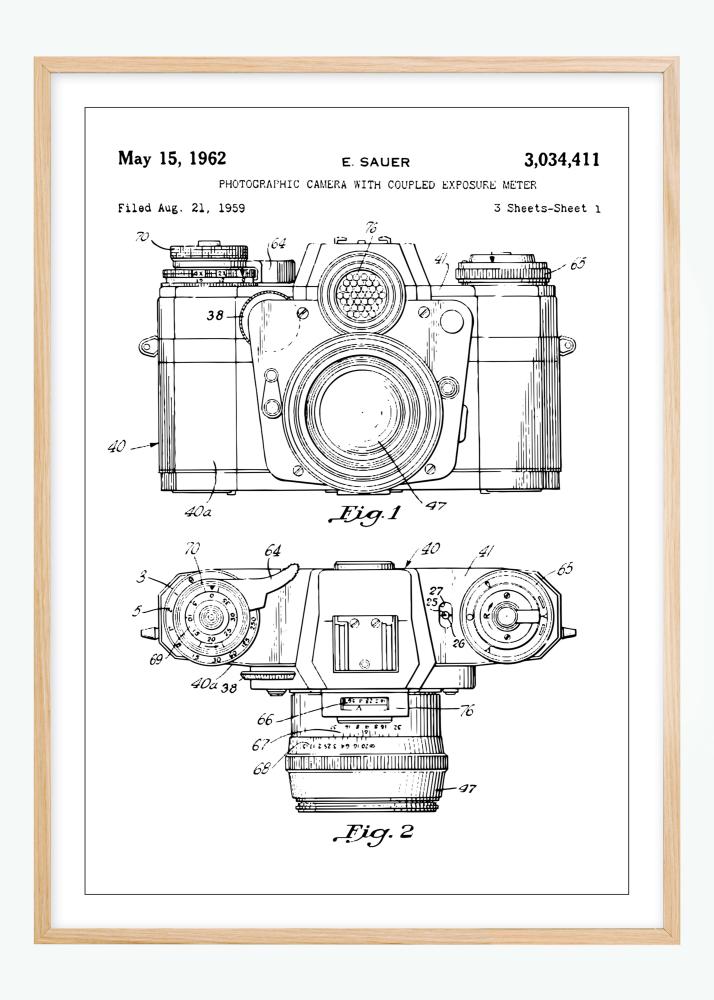 Patent, oštevilčen 3,034,411, je bil registriran 21. avgusta 1959 in izdan 15. maja 1962 E. Sauerju. Ta patentni plakat ni le poklon zlati dobi fotografije, temveč tudi simbol brezčasnega oblikovanja in ustvarjalnosti. Je domiselno umetniško delo, ki se poda tako minimalističnemu kot industrijskemu slogu notranje opreme, pravi sprožilec pogovorov, ki dopolnjuje vsak prostor, kjer je postavljen.