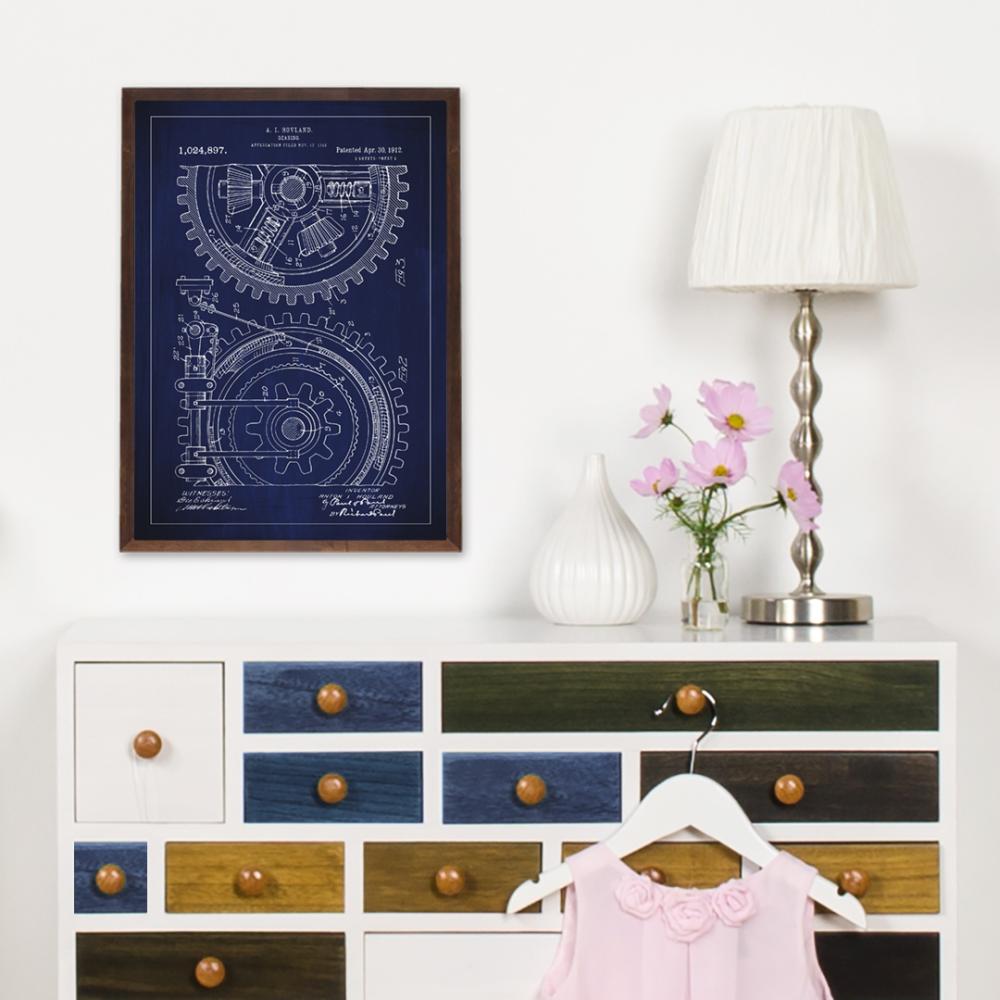 Ta patentna risba ni le odlična umetniška reprezentacija, ampak tudi dokument, ki slavi človeški trud po tehnološkem napredku. Je popolna za zbiratelje zgodovinskih patentov ali kot edinstveno darilo za tiste, ki jih zanima obdobje industrijske revolucije. S predstavljanjem te zgodovinske inženirske umetnosti počastite tiste, ki so postavili temelje za sodobno strojništvo in oblikovanje.