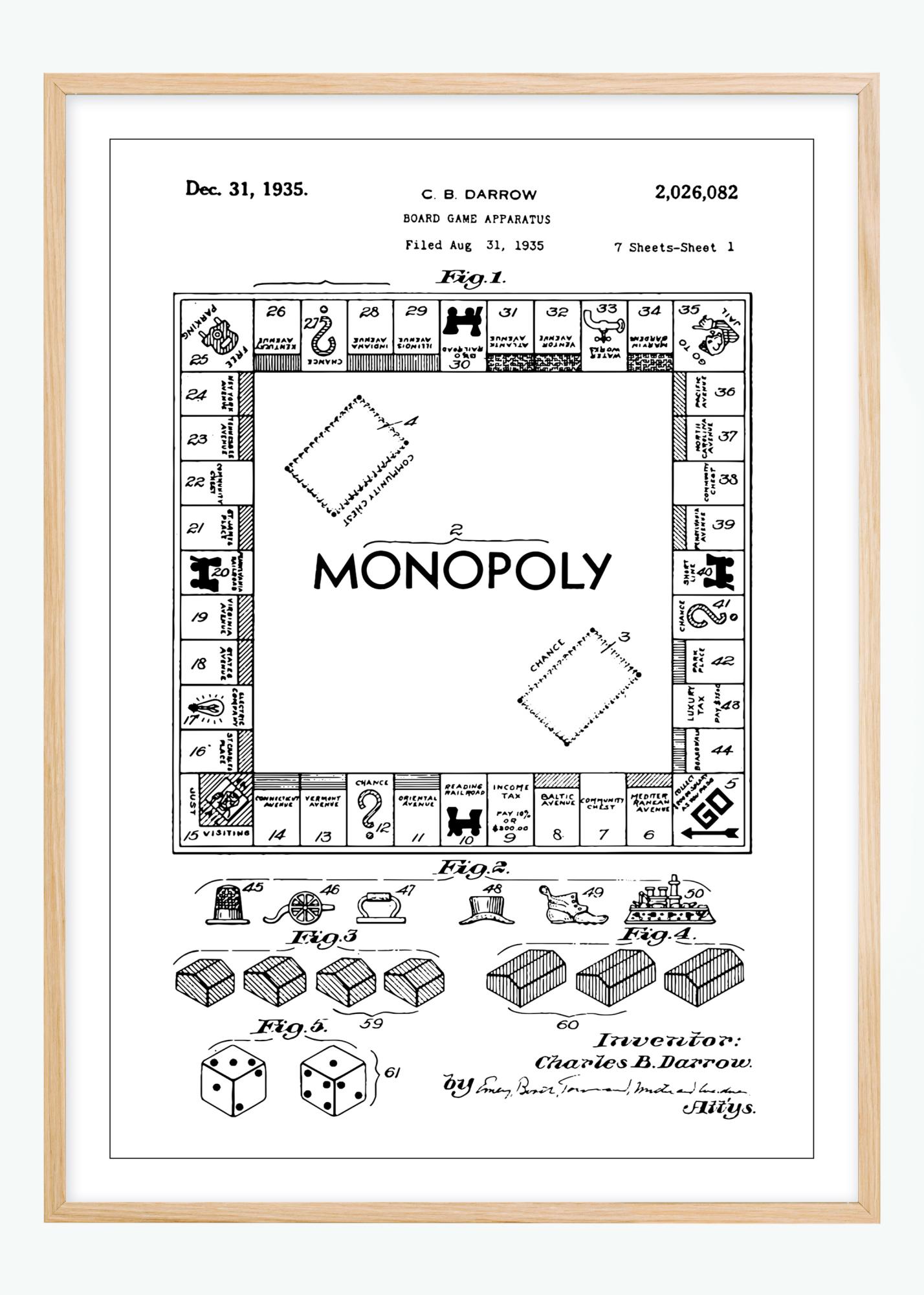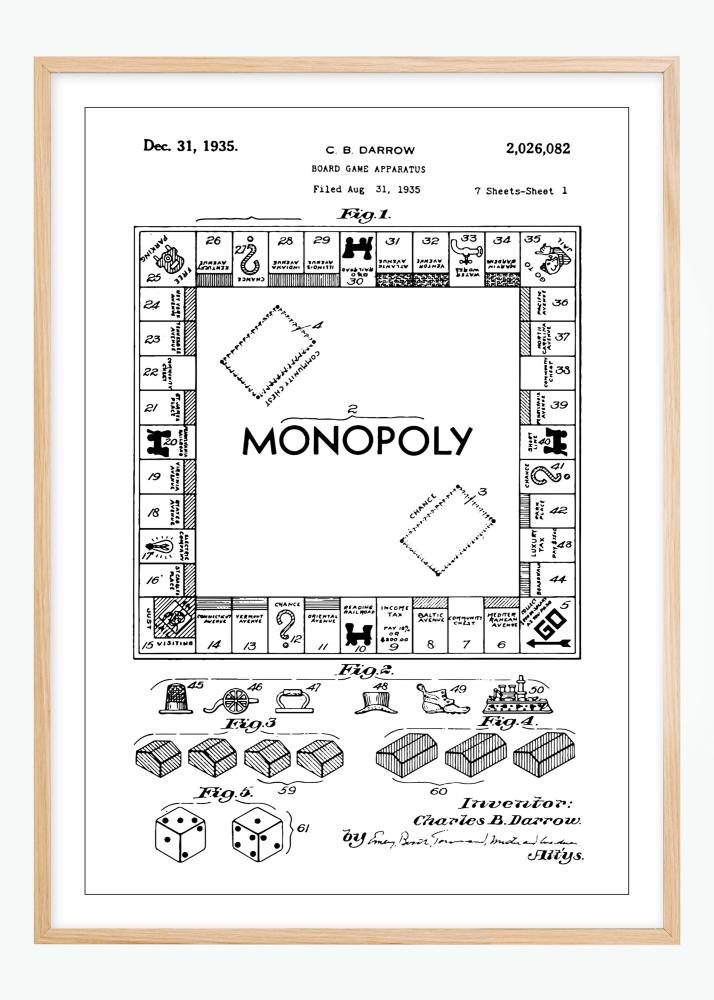 Popolno za igralno sobo, dnevno sobo ali kot edinstveno darilo, ta patentni načrt je nujen za vse navdušence nad Monopolyjem in za tiste, ki imajo ljubezen do zgodovine iger. Nagovarja tako zbiratelje kot tudi tiste, ki iščejo edinstveno in pogovor vzbujajočo stensko dekoracijo. Ključne besede za iskanje vključujejo 'Monopoly patentni poster', 'patent družabne igre', in 'klasičen načrt igre' za poudarjanje njegovega pomembnega mesta v dediščini igralnega sveta in njegovega stalnega vpliva na družinsko zabavo.