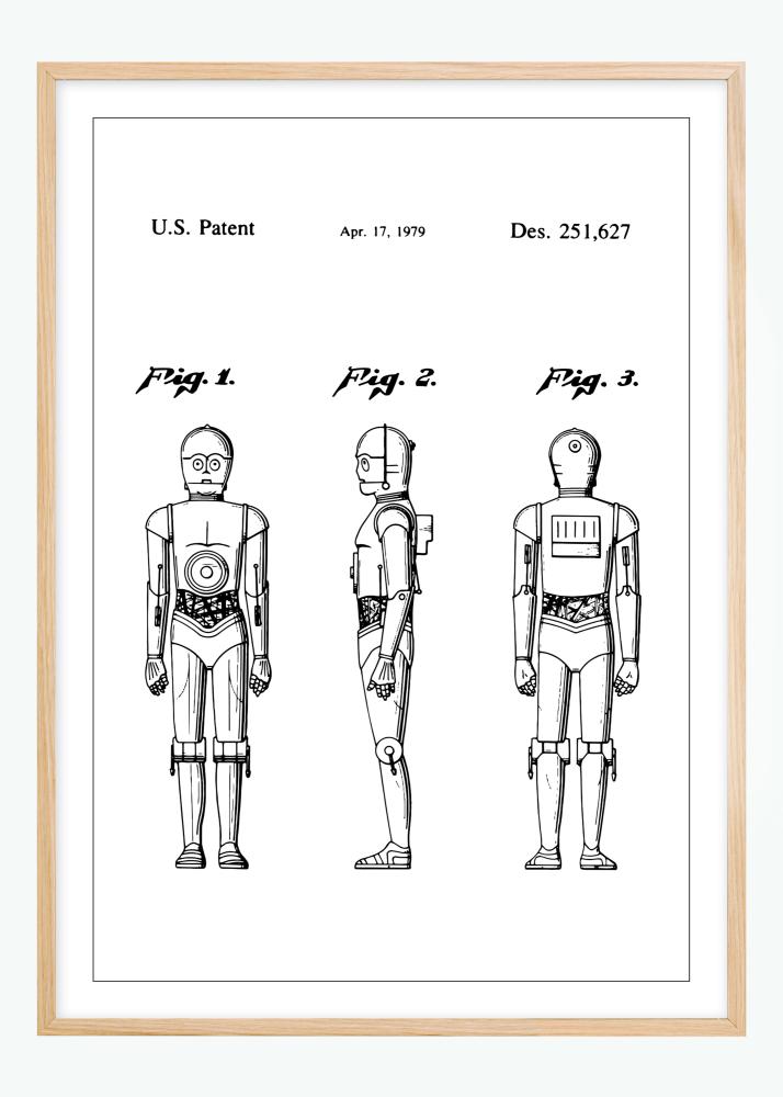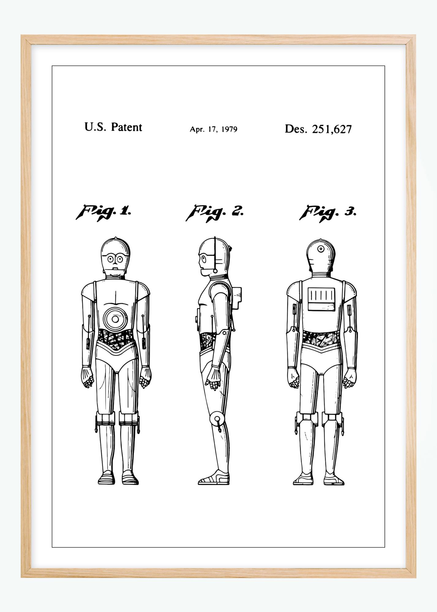 Ta edinstvena patentna plaketa prikazuje C3PO iz Vojne zvezd, z ameriškim patentom Des. 251,627, odobrenim 17. aprila 1979. Figura je prikazana iz treh različnih kotov, kar omogoča popoln pregled nad dizajnom. Ta plakat ujame zgodnjo fascinacijo nad robotiko in njenimi potencialnimi uporabe. S svojo podrobno in tehnično izdelano podobo je to popolna stenska dekoracija za ljubitelje tehnologije in oboževalce retrofuturizma.