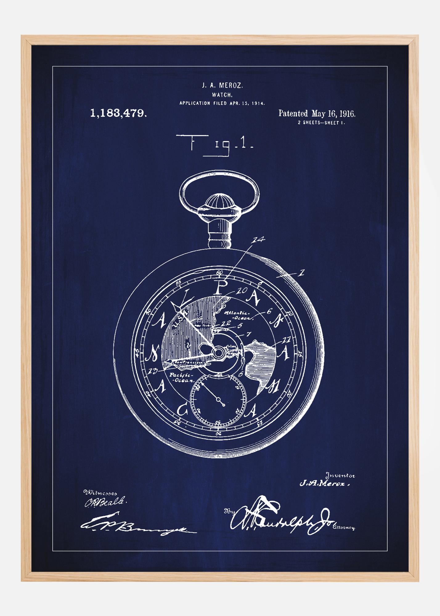 Raziskujte iznajdljivost zgodovine z našim ekskluzivnim patentnim plakatom, ki prikazuje klasičen časomer. Ta avtentična patentna risba, prvotno vložena 15. aprila 1914 in odobrena s patentno številko 1,183,479 16. maja 1916, poudarja brezčasno inovacijo J.A. Meroza. Njene natančne podrobnosti in tehnične skice ponujajo edinstven vpogled v zgodnji razvoj zapestne ure. Ta patentni plakat združuje industrijsko zgodovino in eleganten dizajn, kar postane popoln začetek pogovora za vse, ki cenijo mehanski dizajn in zgodovinske dokumente.