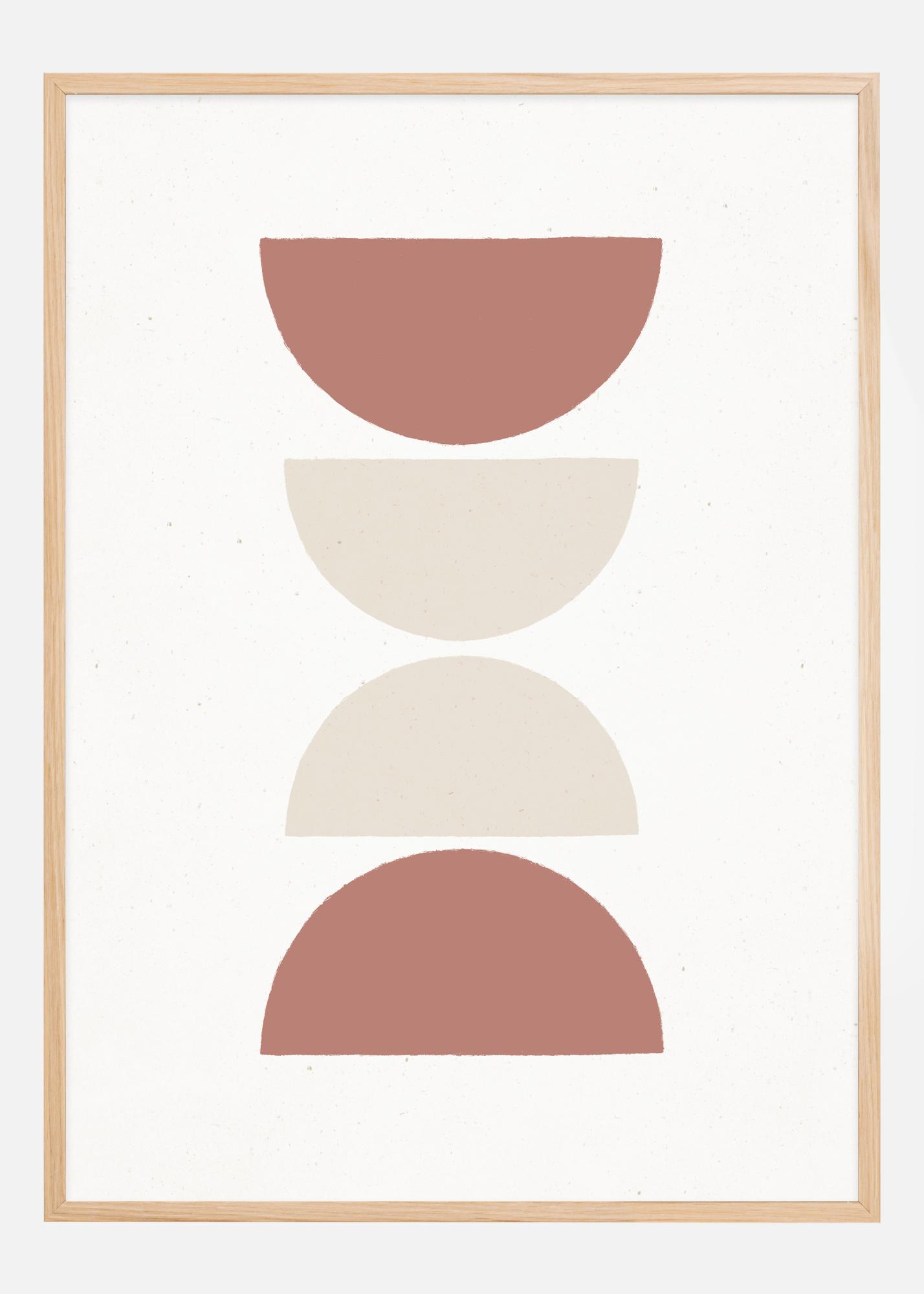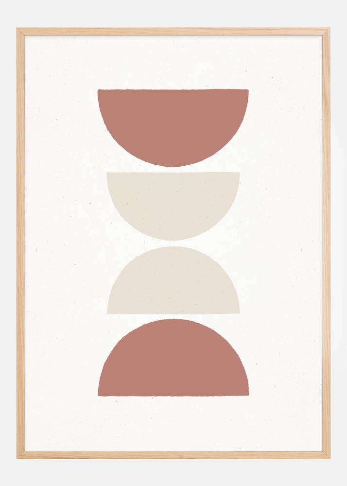 Ta prefinjena plakat, z naslovom 'Rust and Sand - Lungo', pritegne pogled s svojim preprostim, a drzno razporeditvijo polkrožnih oblik. Leže ena na drugi v pomirjajoči simetriji, kar ustvarja vertikalno dinamiko na beli podlagi. Z diskretno paleto rjaste rdeče in peščeno bež je ta natis poklon sublimno preprostemu ter prinaša topel in zemeljski občutek vsakemu prostoru, v katerem je postavljen.
