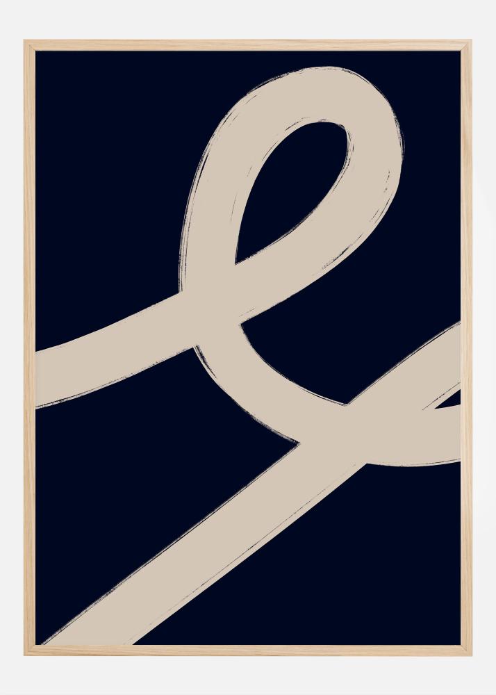 Ta minimalističen in sodoben plakat zajema bistvo skandinavskega oblikovanja s svojo čisto in preprosto kompozicijo. Velika, bež vijugasta linijska oblika se igra proti temno modremu ozadju in ustvarja podobo, ki je hkrati pomirjujoča in vizualno zanimiva. Kontrast med obema elementoma je prefinjen in ustvarja močan grafični učinek, ki poudarja lepoto abstraktne umetnosti.