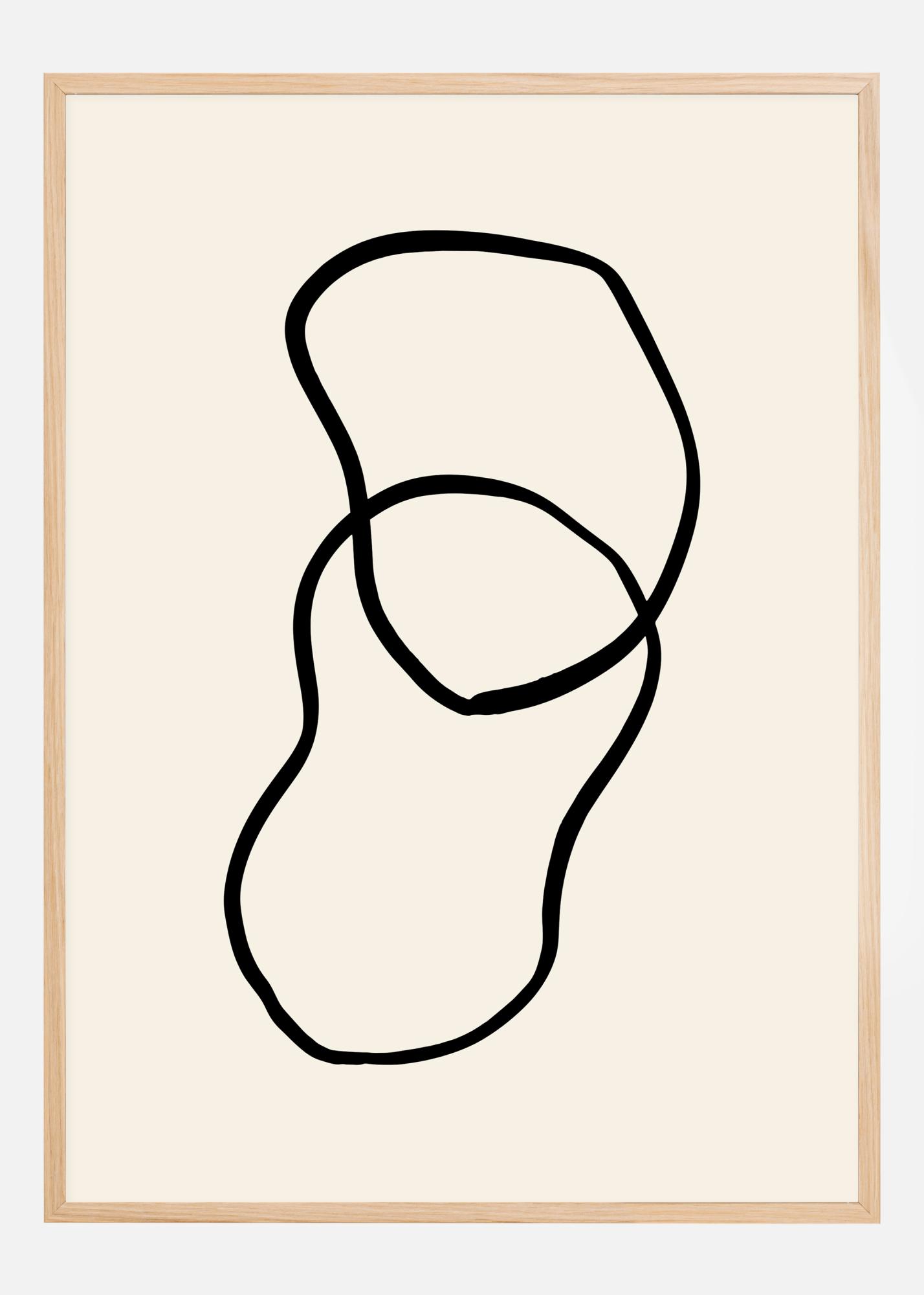Abstraktni plakat z dvema oblikama, ki se prepletata. Dve okrogli obliki z debelejšimi črnimi črtami se sekata in ustvarjata tretjo obliko. Obesite to zabavno črno-belo sliko na pisano steno, da pridobite sodoben umetniški občutek v domu.