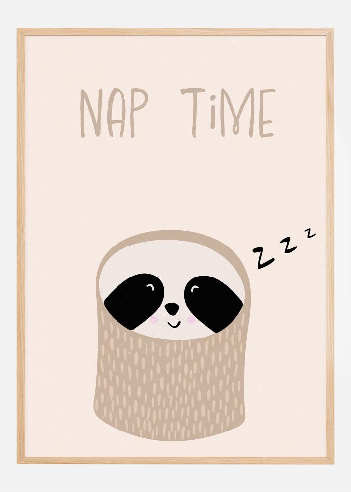 Ta očarljiv plakat, okrašen z besedami "NAP TIME" in upodobitvijo spečega lenivca, je popolna stenska dekoracija za ustvarjanje mirnega in sproščenega vzdušja. Ilustracija je narejena v mehkih, utišanih barvah, s pastelno roza kot ozadjem in lenivčevo dlako v naravnih odtenkih bež in rjave. Velike, prijazne oči in miren nasmeh na obrazu lenivca so neustavljivi in dajejo občutek topline in miru.