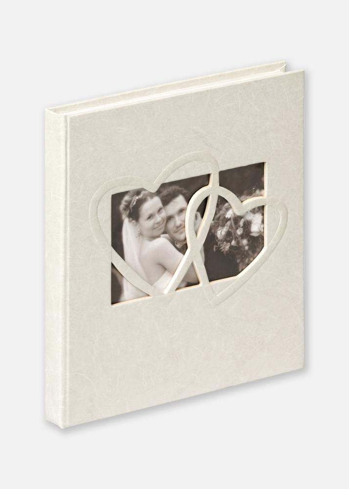 Romantična knjiga gostov za poroko z lepimi platnicami iz platna s srčastimi vzorci. Na sprednji strani je tudi prostor za lastno sliko.