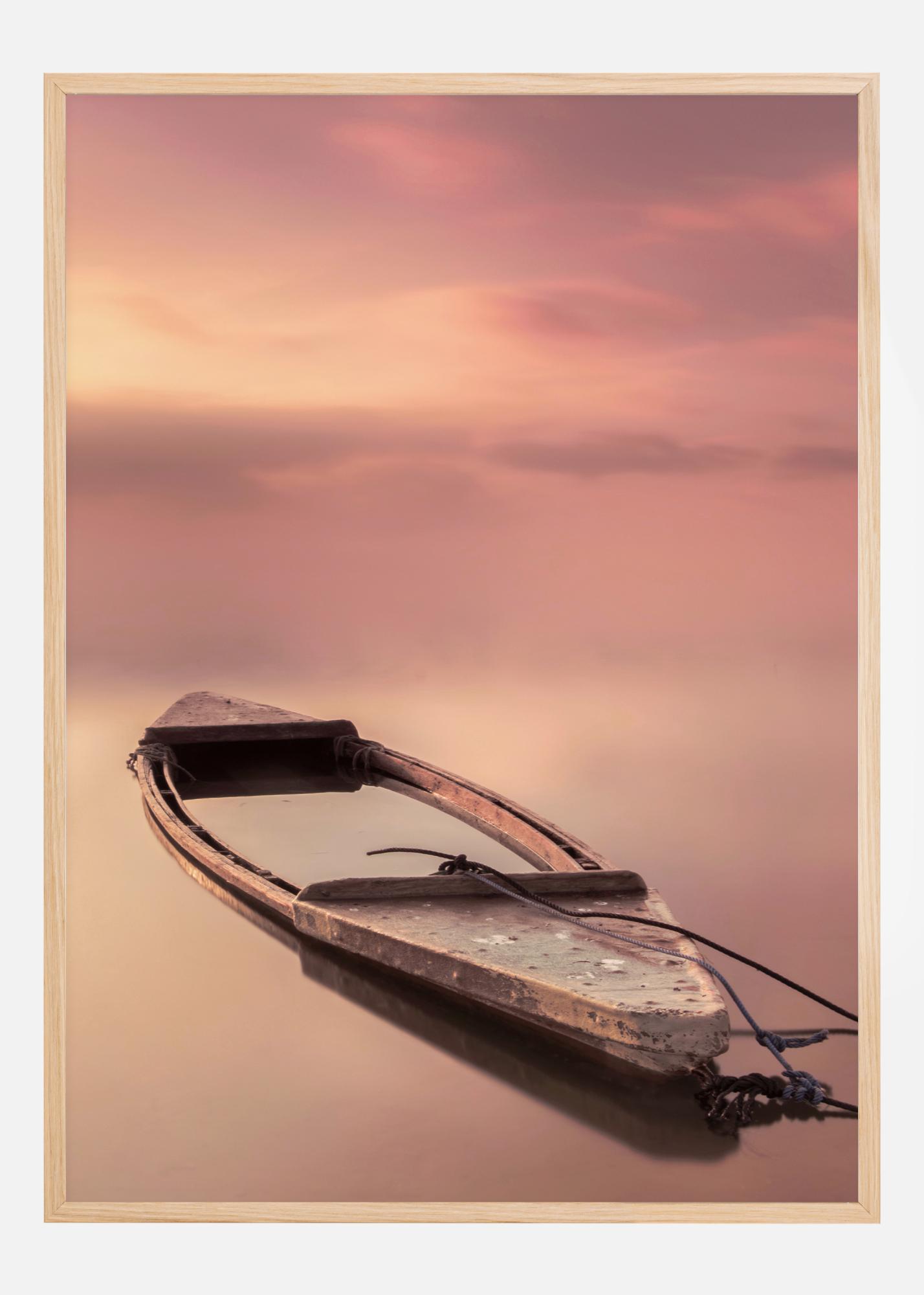 Miren plakat z lesenim čolnom, ki leži v mirni vodi. Voda in nebo imata mehke rožnate in vijolične pastelne barve. Združujejo se med seboj in ustvarjajo vtis, da se voda in nebo združujeta in nadaljujeta v neskončnost. Čoln je edini stalni objekt, ki je središčna točka v tej nežni, pomirjujoči sliki.