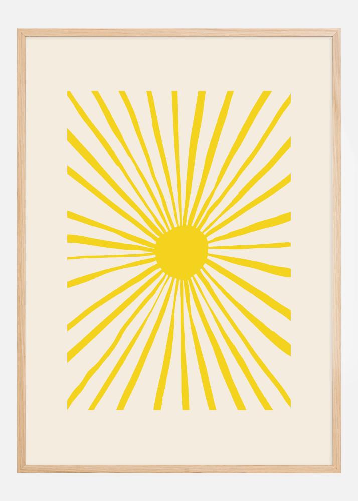 Dodajte svoji steni pridih sonca s tem živahnim in energičnim posterjem, ki ujame bistvo sijočega sonca. Ta minimalistična zasnova je značilna po svojih močnih in sijajnih rumenih odtenkih, ki se širijo iz osrednje točke, ustvarjajoč dinamičen učinek sončnih žarkov, ki se širijo po pomirjajoči kremni ozadji. Ta poster s soncem daje občutek topline in veselja ter postane takojšnji privlačni element v vsakem prostoru.