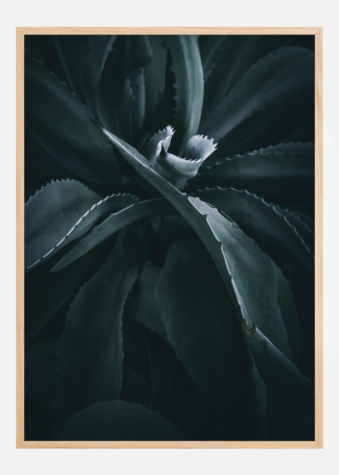 Impresionirajte s tem umetniškim posterjem, ki ujame skrivnostno lepoto z bodičasto aloe vero. Globoka sivo-zelena barvna paleta ustvarja skoraj monokromatičen učinek, kar daje modern in sofisticiran občutek. Vsak list je kiparski in detajliran, z mehkimi robovi, ki prehajajo v ostre konice, kar na dramatičen in skoraj abstrakten način ujame bistvo rastline.