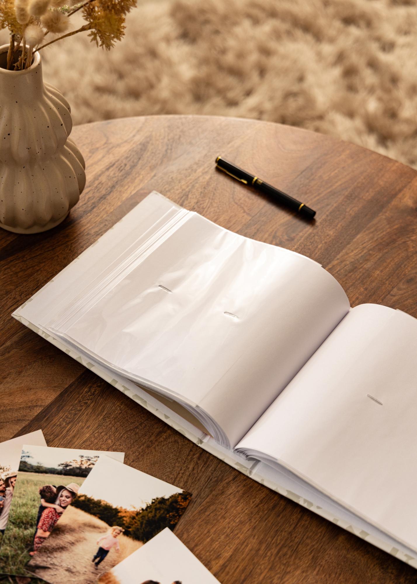 Platnice albuma so bele, kar daje brezčasen in klasičen občutek, ki se prilega v vsak dom. Usmeritev slik je ležeča, kar omogoča harmonično predstavitev vaših fotografij. Bele strani ustvarjajo čisto ozadje, ki najbolje poudarja vsako sliko.