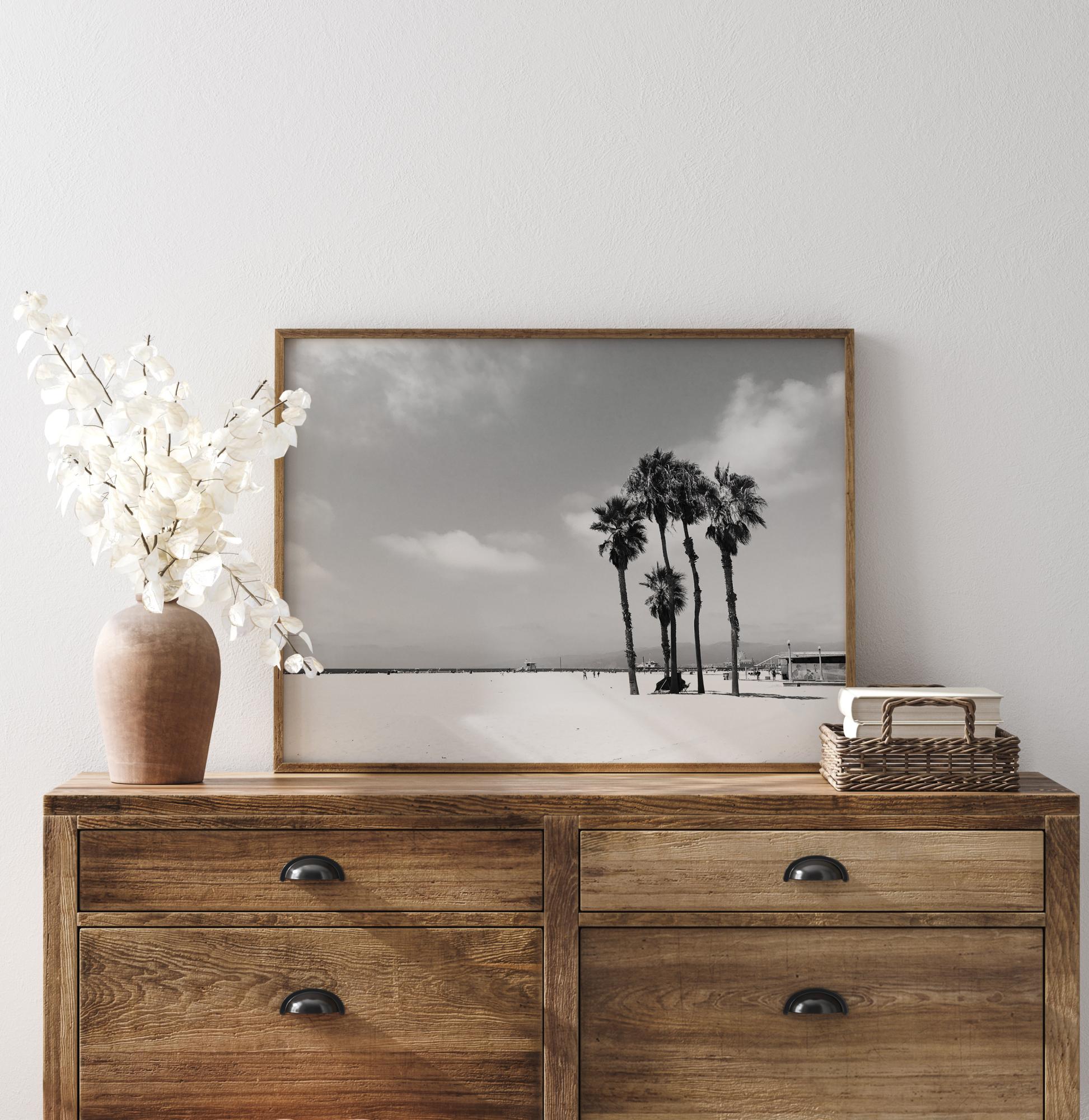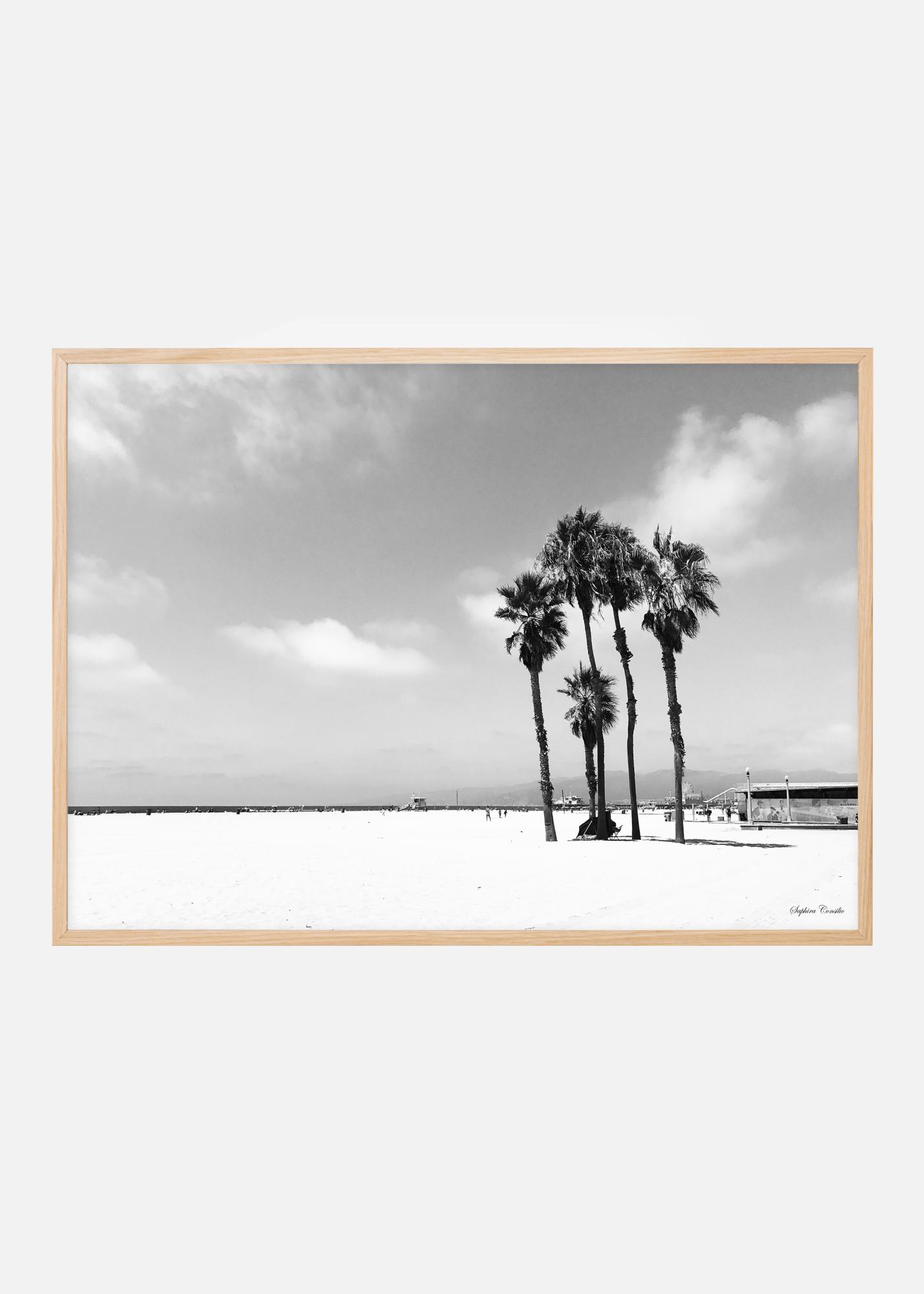 Tukaj nas fotografka Saphira Consilio popelje na belo plažo v Benetkah. Tukaj si ljudje delijo prostor s čudovitimi palmami, zabaviščnimi parki in reševalnimi stolpi reševalcev iz vode. Lep črno-bel plakat v ležečem formatu.