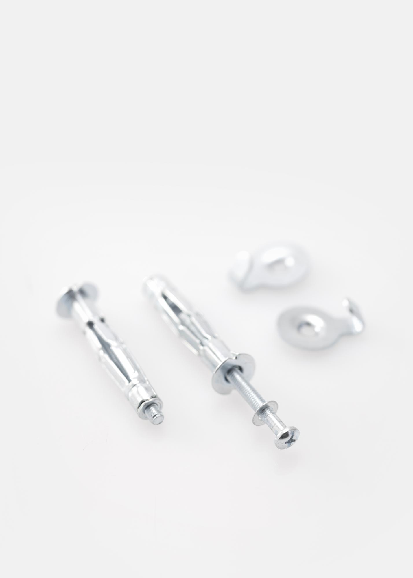 2 kosa talnih vložkov in vijaki M5 za 13 mm mavčno steno. Reža v talnem vložku ustreza dimenziji vijaka 8 mm.