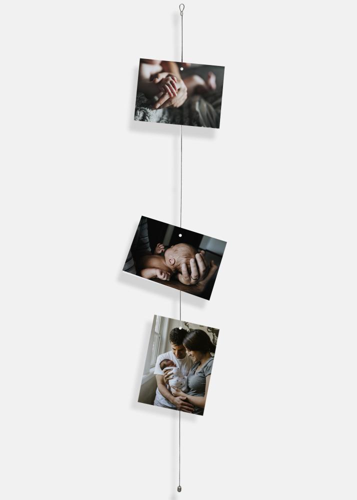 Kovinska vrvica za fotografije dolžine 150 cm, na katero pritrdite svoje slike z 10 močnimi magneti za fotografije, ki so priloženi. Popolno, ko želite na drugačen način prikazati svoje najljubše fotografije.