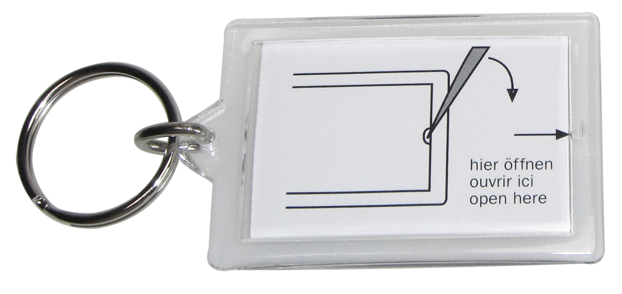 Imejte s seboj vaše najljubše slike povsod! Elegantna ključenka iz akrilne plastike s prostorom za 2 sliki (sprednja in zadnja stran) v dimenzijah 3,5x4,5 cm.