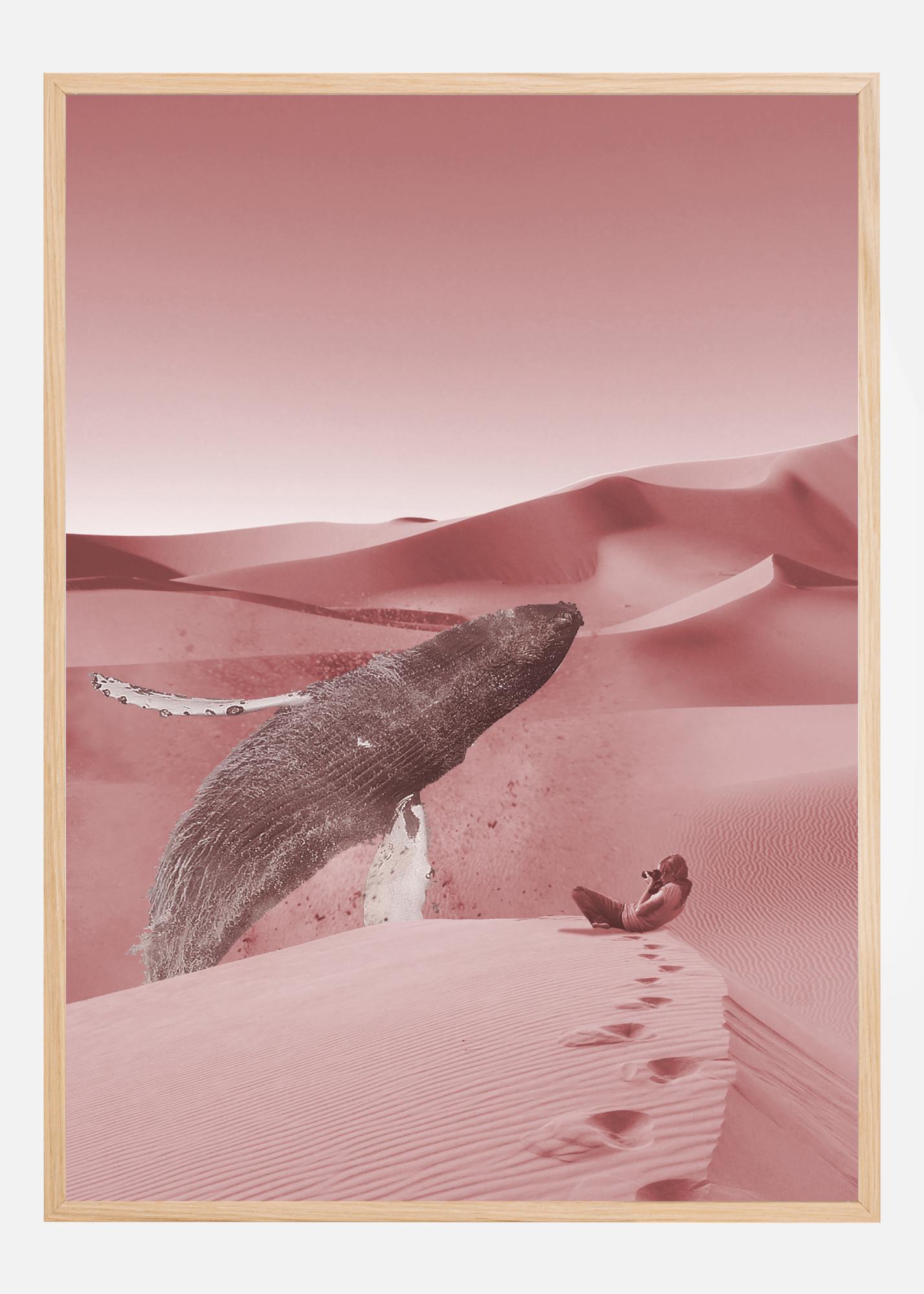 Prepusti se sanjam v surrealističnem svetu s to umetniško posterjem, kjer mogočni kit vstaja iz rožnatih sipin spreminjajoče se pokrajine. Ta nepričakovana kombinacija morskega velikana in valovitih gričev puščave izziva resničnost in privablja gledalca v svet fantazije. Rožnati ton, ki prežema sliko, daje občutek miru in igrivosti, medtem ko jasni stopinje nas vodijo v zgodbo, ki čaka na raziskovanje.