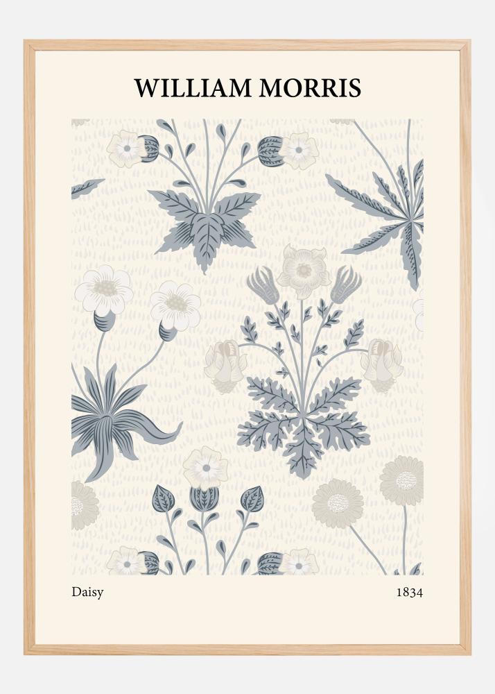 Ta čudovit poster vabi gledalca v svet Williama Morrisa z vzorcem "Daisy" iz leta 1834. To je brezčasen dizajn, ki očarljivo ujema bistvo preprostosti narave skozi bledo modre marjetice in elegantno nameščene zelene liste. Celotna kompozicija diha mirno harmonijo, ki je prav tako aktualna zdaj kot takrat.