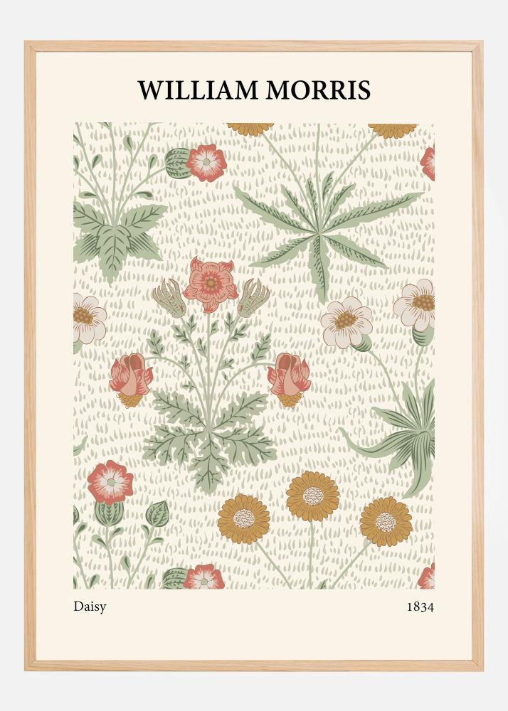 Ta očarljiv plakat prikliče občutek bujnega angleškega vrta s svojim detajliranim vzorcem, ki ga je zasnoval William Morris. Motiv je poln življenja in dinamike skozi botanične ilustracije, predstavljene v paleti zelenih in roza odtenkov, kar daje življenje vsaki roži in listu. Ključne komponente v dizajnu vključujejo cvetove, podobne sončnicam, in globoke koralno rožnate cvetlice, ki so obdane s prefinjenimi zelenimi listi. Ta poster je popoln dodatek za tiste, ki iščejo tisk, ki združuje navdih iz narave z občutkom zgodovinskega dizajna.