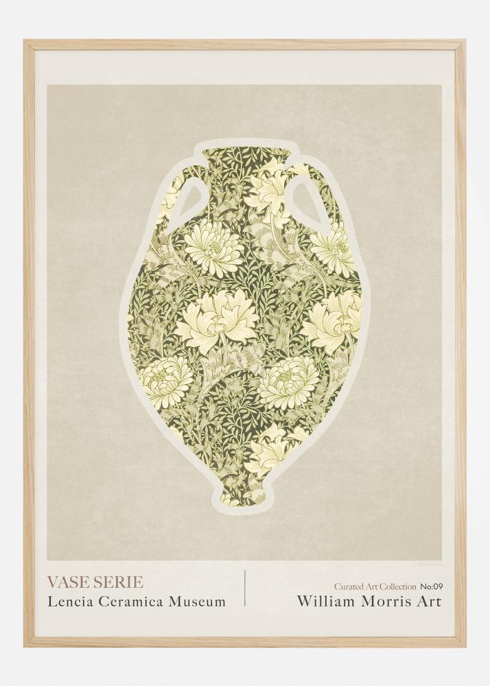 S paleto barv, ki jo sestavljajo zemeljsko zeleni in kremni odtenki, poster odraža globoko spoštovanje do tradicionalnih umetniških oblik in obrtništva. Motiv je obdan s svetlim lesenim okvirjem (ni vključen v motiv), kar daje moderni pridih klasični vsebini in ustvarja most med preteklostjo in sodobnostjo. Ta poster iz muzeja Lencia Ceramica je oštevilčen kot št. 09 v seriji in je izvrstna dopolnitev zbirk tako ljubiteljev kot poznavalcev, pa tudi lep pridih v vsakem domu ali pisarniškem prostoru, ki ceni dizajn in zgodovino.