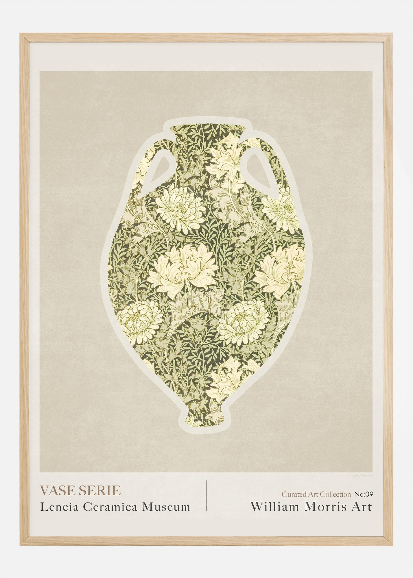 Ta elegantna in podrobna poster je del naše "Kurirane umetniške kolekcije" in je navdihnjen s strani Williama Morrisa, ikone umetnosti ustvarjanja vzorcev in vodilne figure v gibanju Arts and Crafts. Poster prikazuje stilizirano vazo, bogato okrašeno z eno od Morrisovih klasičnih, botaničnih oblik. Ta brezčasna ilustracija odraža cenjenost obrti, podrobnosti in estetike naravnega sveta.