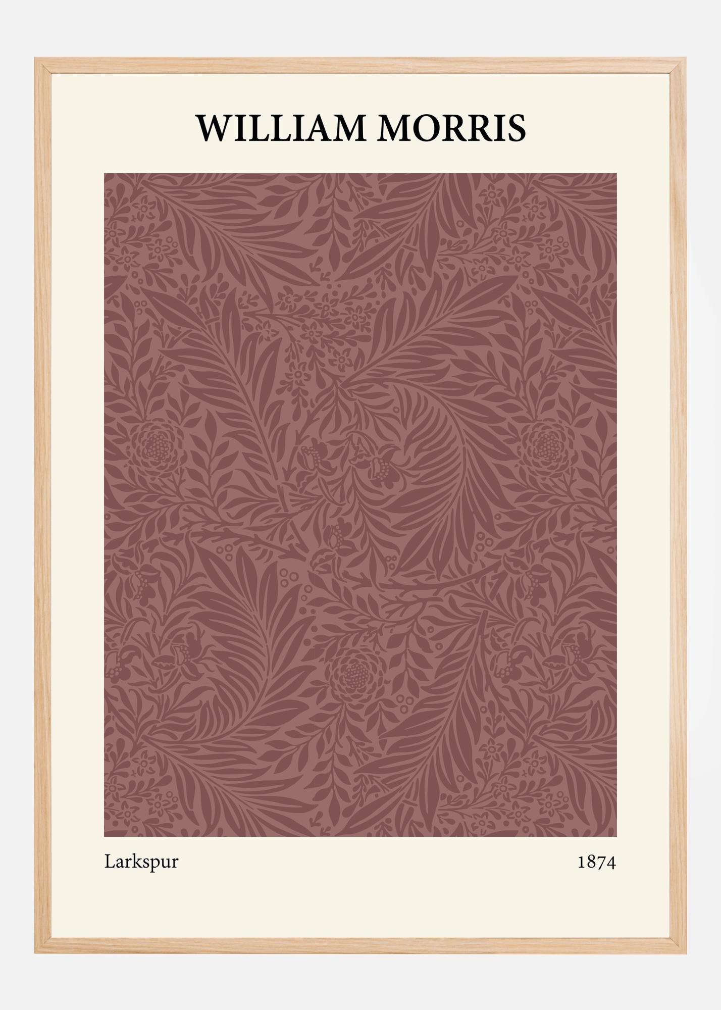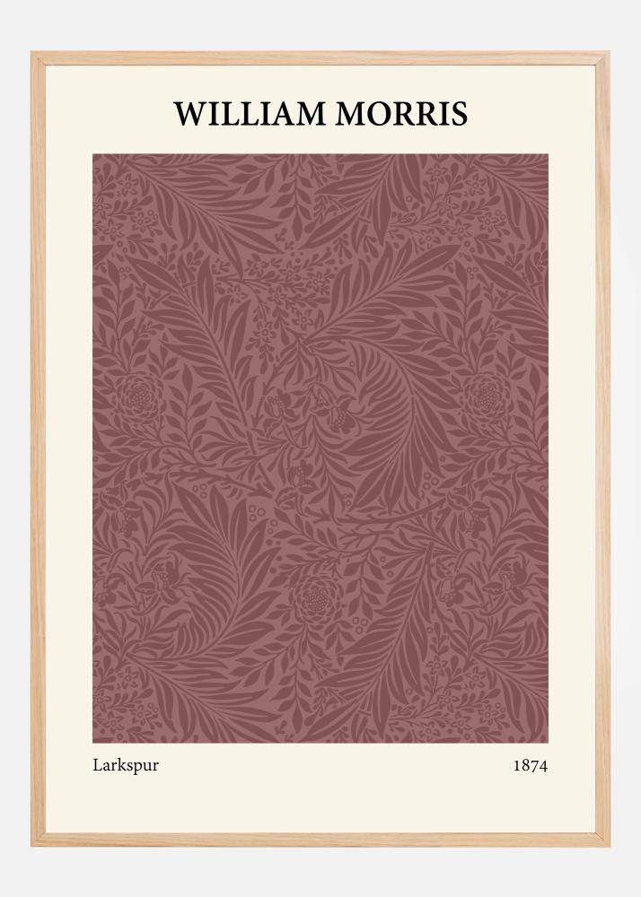 Ta plakat je reprodukcija brezčasnega dela Williama Morrisa "Larkspur" iz leta 1874 in prikazuje hipnotizirajočo razporeditev cvetličnih vzorcev v topli in prijazni barvni shemi. Dizajn, znan po svoji podrobnosti in organski estetiki, je klasična reprezentacija Morrisove ljubezni do narave in njegove umetniške spretnosti v gibanju Umetnosti in obrti. Popolno za tiste, ki cenijo zgodovinske umetniške odtise in želijo dodati pridih viktorijanskega šarma svojemu domu.